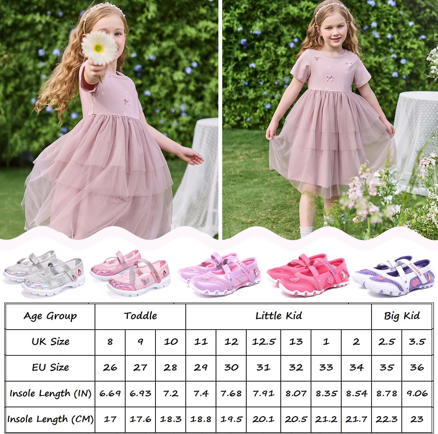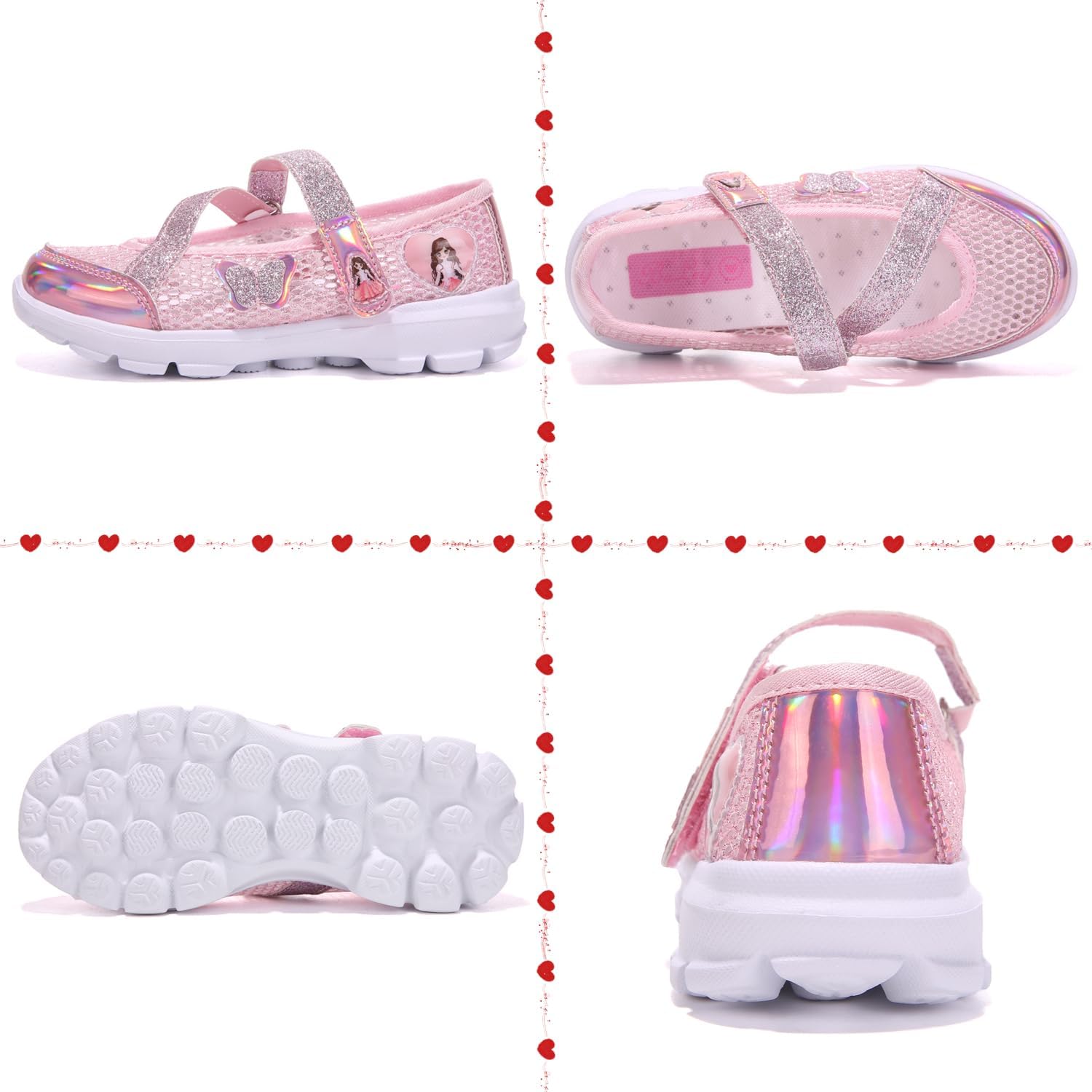 Unitysow Girl Sandals Glitter Princess Shoes Flat Walking Sandals Comfort Mary Jane Birthday Party Dance Shoes for Little Kid/Big Kid