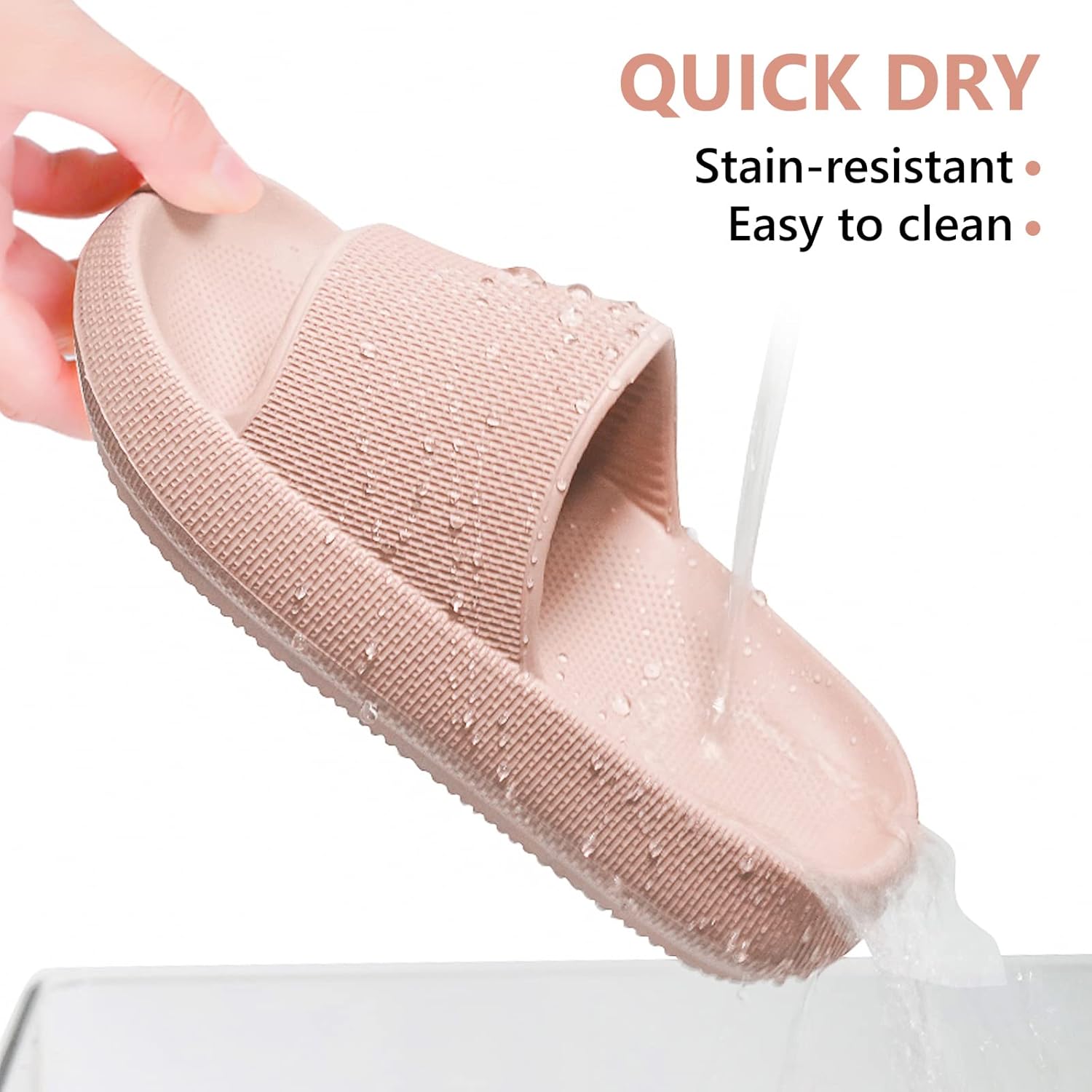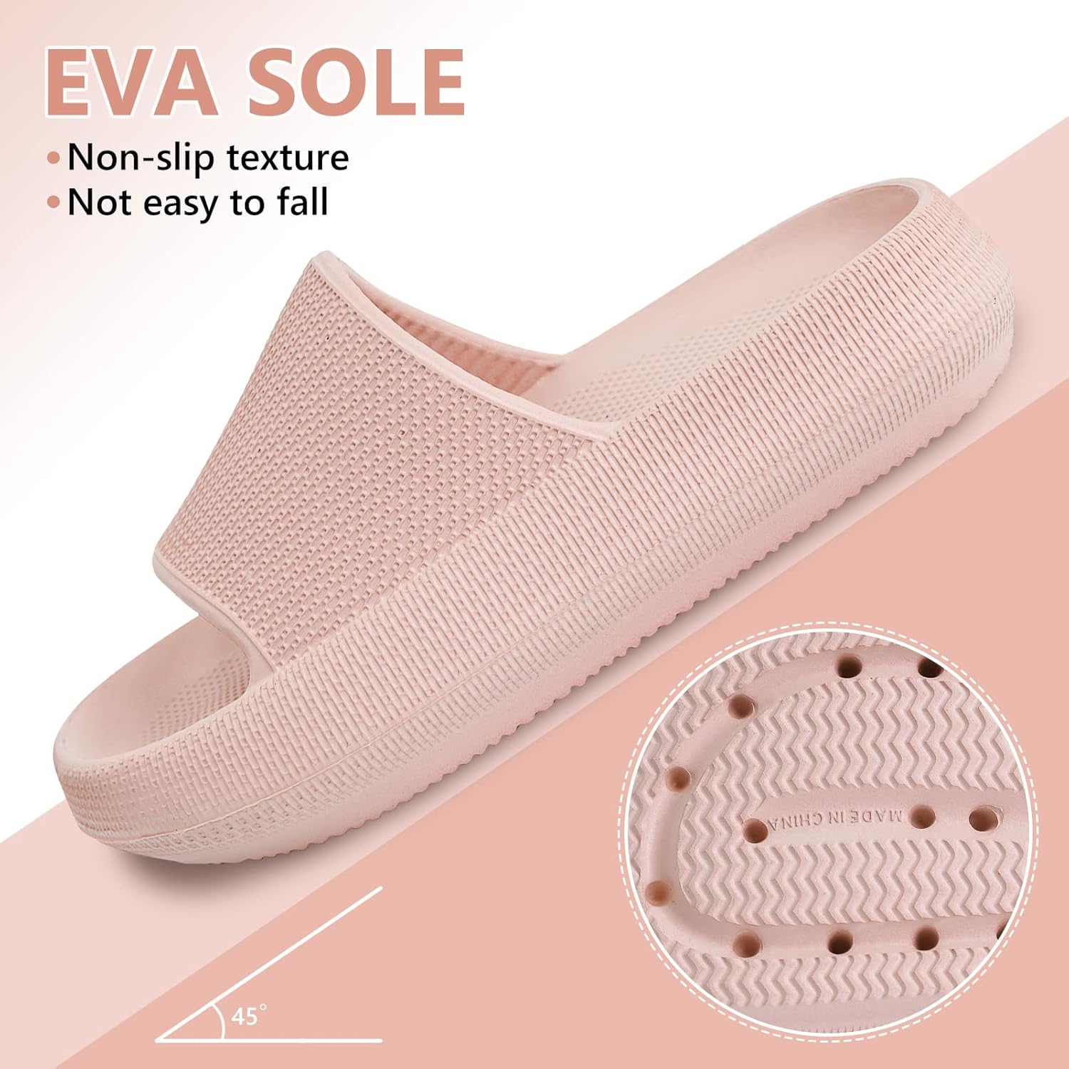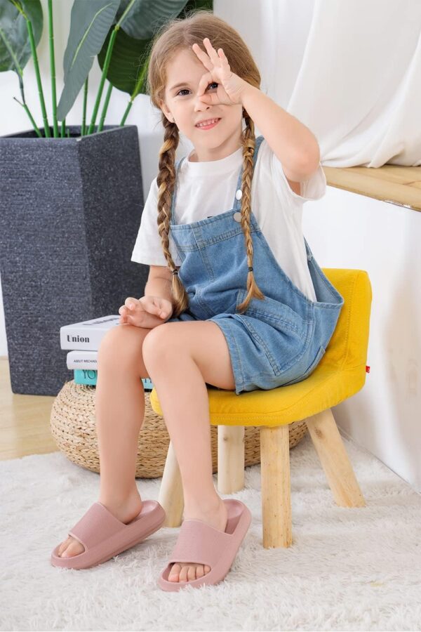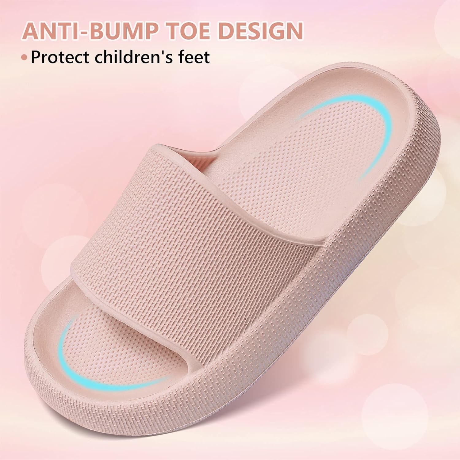 Our Cloud Slides use high elastic material which makes the slippers comfortable to wear.The thickened sole can effectively balance pressure and reduce stress.EVA sole with non-slip texture improves the grip of slides, mom no longer has to worry about child slipping while walkingKids cloud slide are perfects for all season and occasions. They are great for indoors, outdoors, by the pool or in the shower.Various colors for your choice, bringing your child a colorful childhood.
