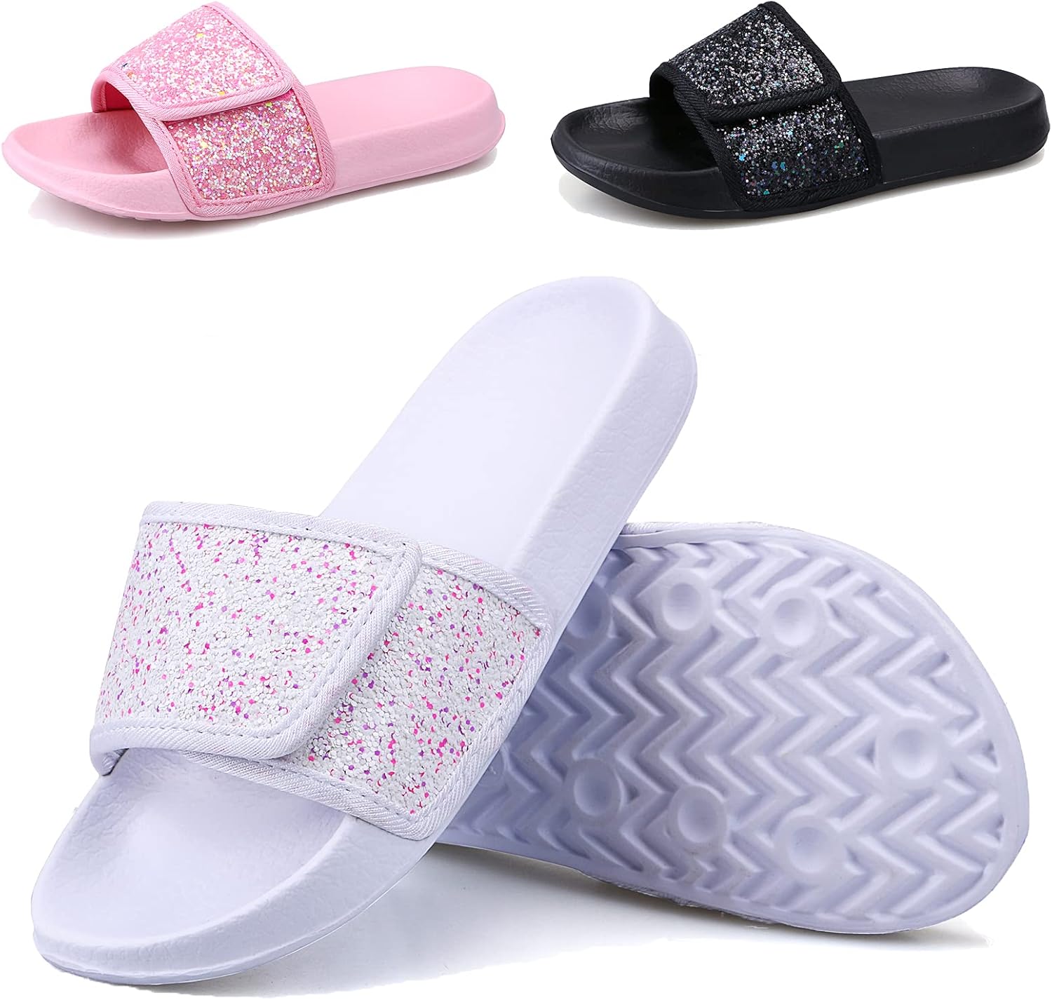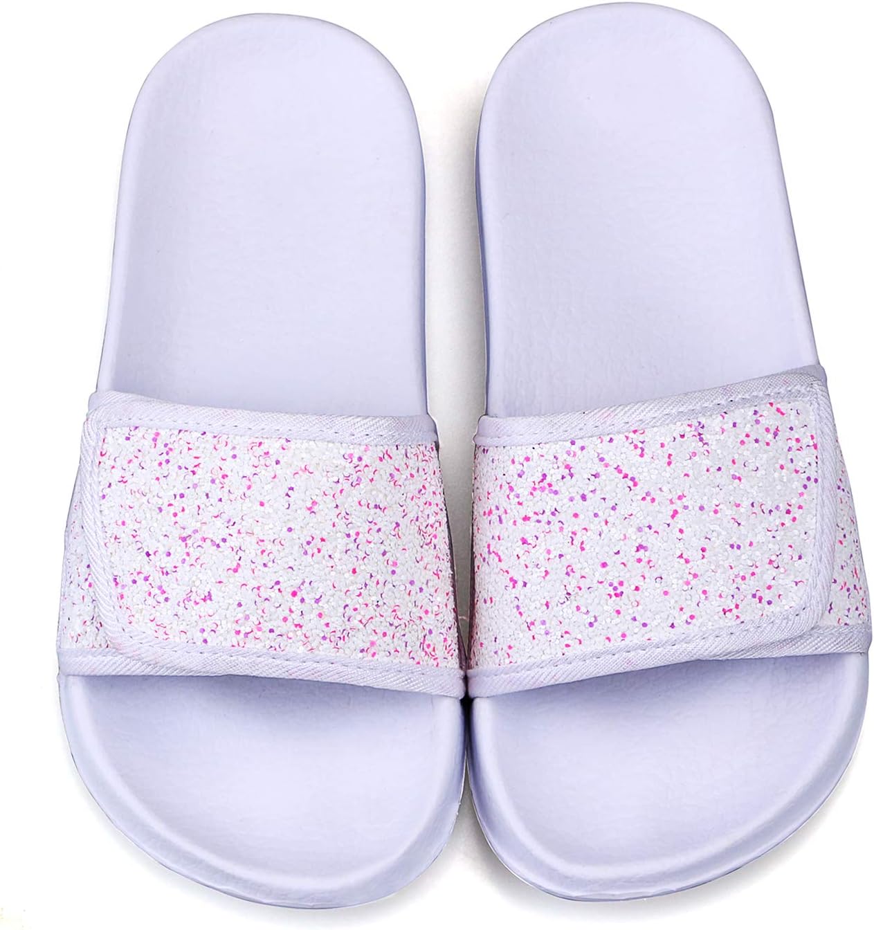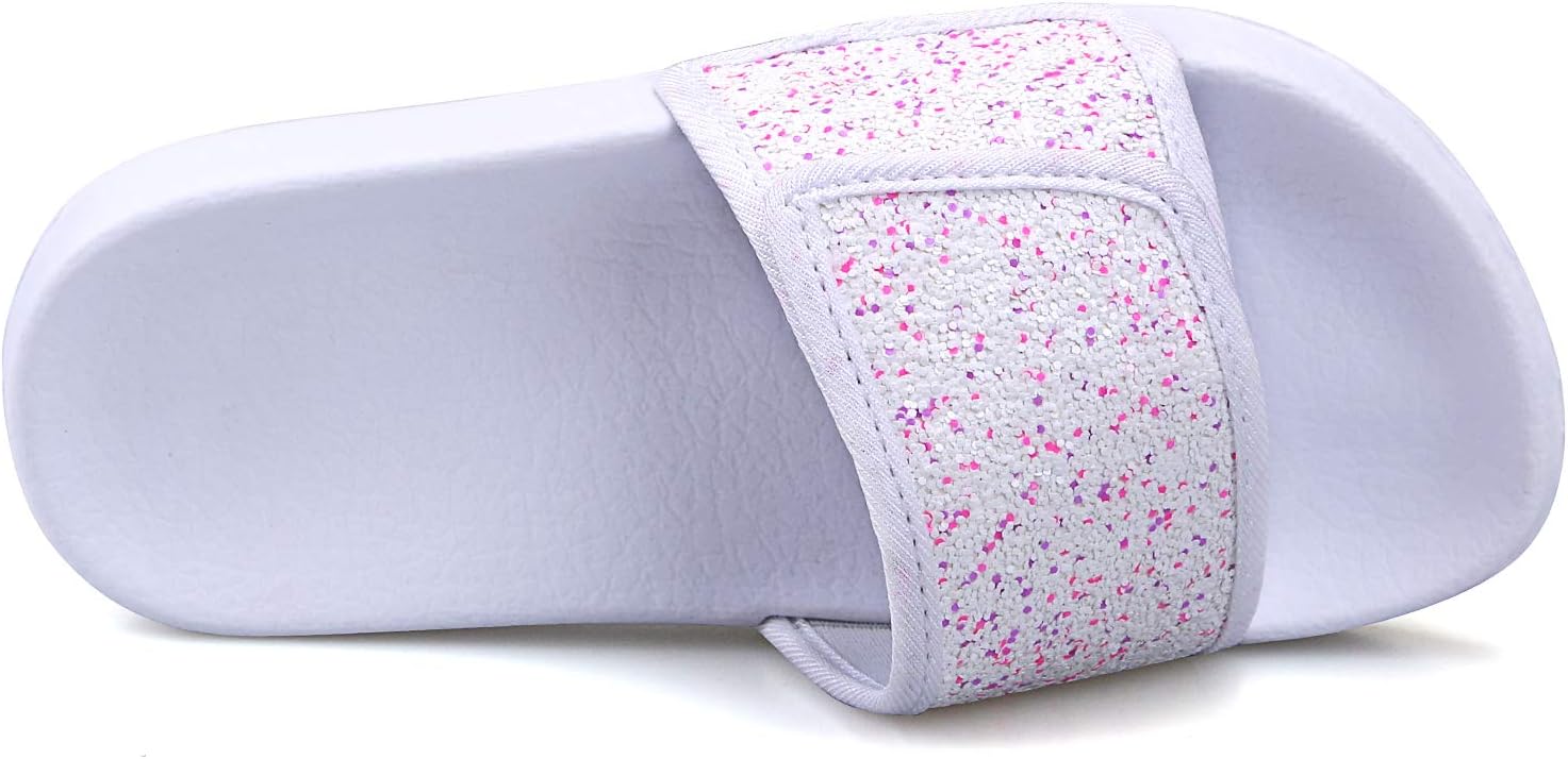 ydscsci Girls Slide Sandals Glitter Sequins Pool Sliders Kids Shower Slippers Beach Flip Flops Hook and Loop Non-slip Thick sole Little Kid