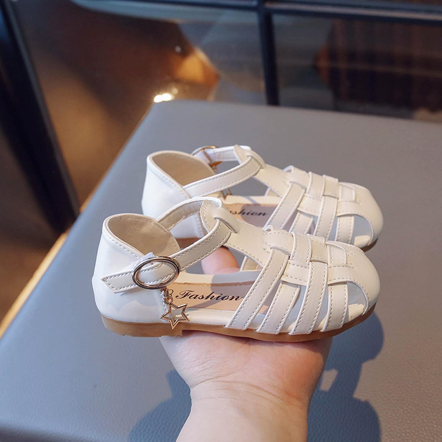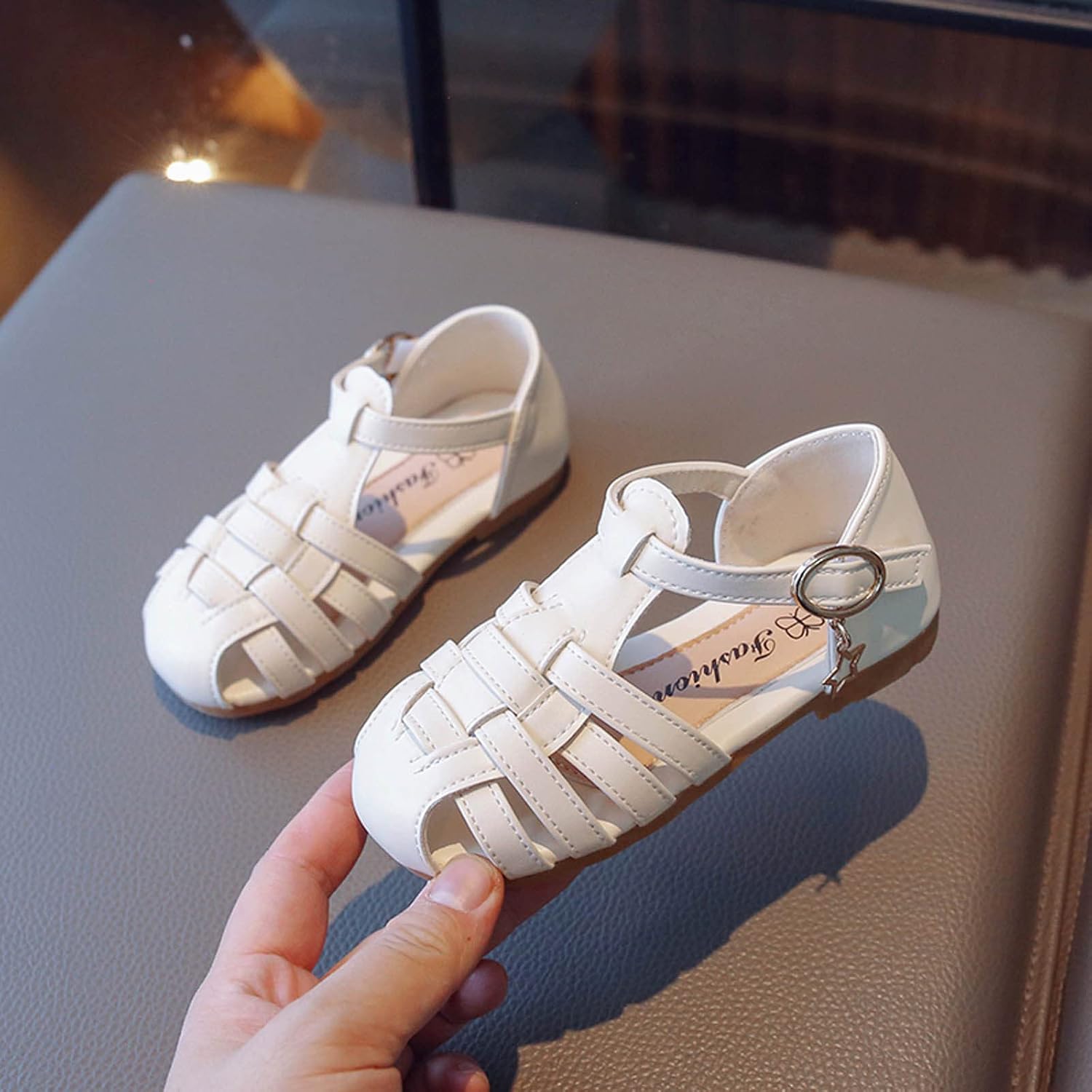 Zeiayuas Baby Girls Sandals Close Toe Leather Shoes Toddler Girls Anti Slip Summer Sandals for Beach Park Casual Rubber Sole T-strap Dress Shoes UK Child 2-12 Years