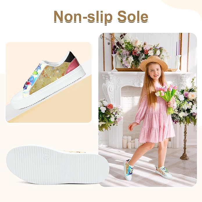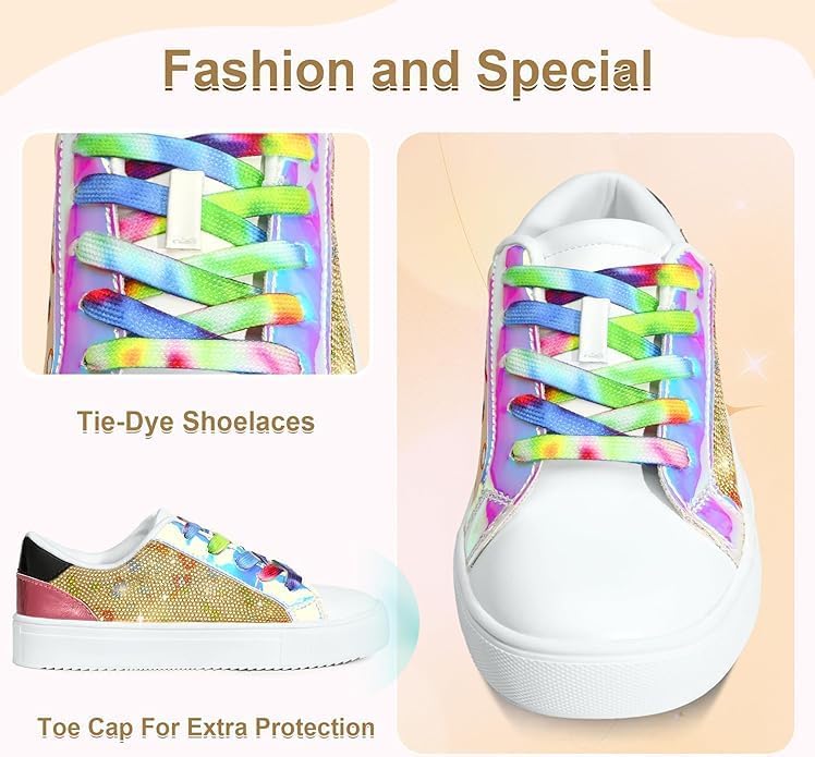 FUPPIA Girls Sneakers Sparkle Glitter Low Top Sneakers for Kids PU Leather Fashion Shoes with Colorful Shoelace for Little Big Kids Multicolor