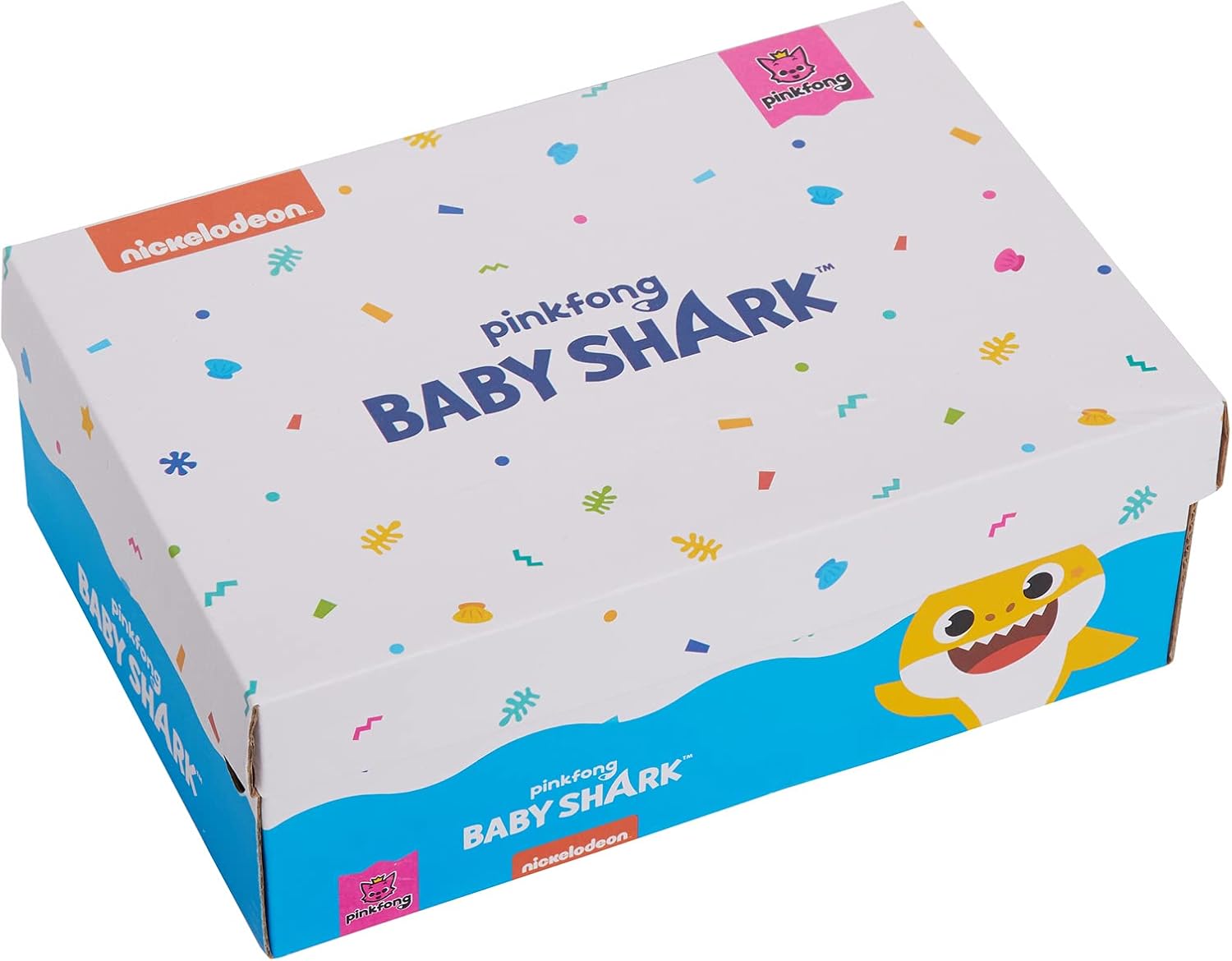 GIRLS BABY SHARK LIGHT UP TRAINERS Official Pinkfong Baby Shark fully licensed merchandise. Designed especially for little feet. This design is a lightweight trainer with light up heels and easy touch fastening strap. The insoles and heels are fully cushioned and provide additional ankle support, which is extremely important in childrens footwear. The uppers are made from a breathable material with stress area covered in a strong but lightweight material – ready to protect the toe / heel and side of the trainer. No Baby Shark trainers are complete without a cute image of the much loved characters which we feature to the side of each trainer with a Baby Shark logo on the strap and iridescent trims. A must have for any young Baby Shark fan. Perfect for gifts as each pair comes in a themed shoe box that can always be used as a toy / storage box.