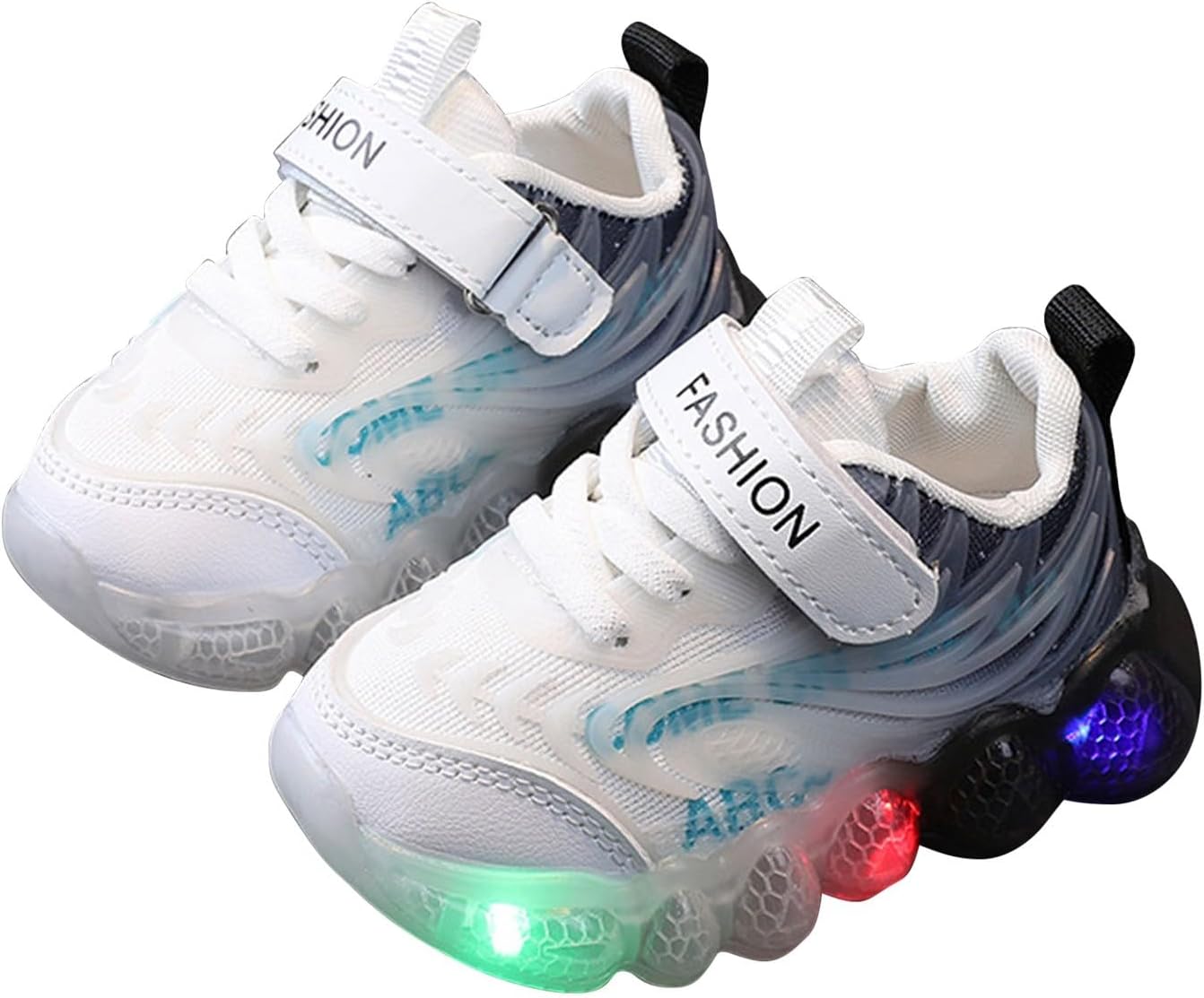 Light Up Fashion Sneaker for Toddler Boys Kids Led Breathable Cozy Lace-Up Sport Shoes Outdoor Running First Walking Toddler Girls Sneakers Black Shoes Boys Youth