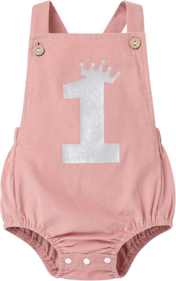 IBTOM CASTLE Baby Girls Boys One Letter Print Birthday Party Romper Overalls Cake Smash Corduroy Sleeveless Backless Bodysuit Photo Shoot Outfit
