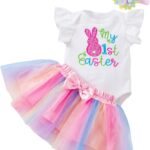 Bufarromio Infant Baby Boys My 1st Easter 3Pcs Outfits Long Sleeve Romper Tractor Suspender Pants Rabbit Ear Hat Clothes Set