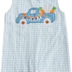 Baby Boys Easter Outfit, Short Sleeve Embroidery Romper with Truck Carrot Print Pants Hat Infant Clothes