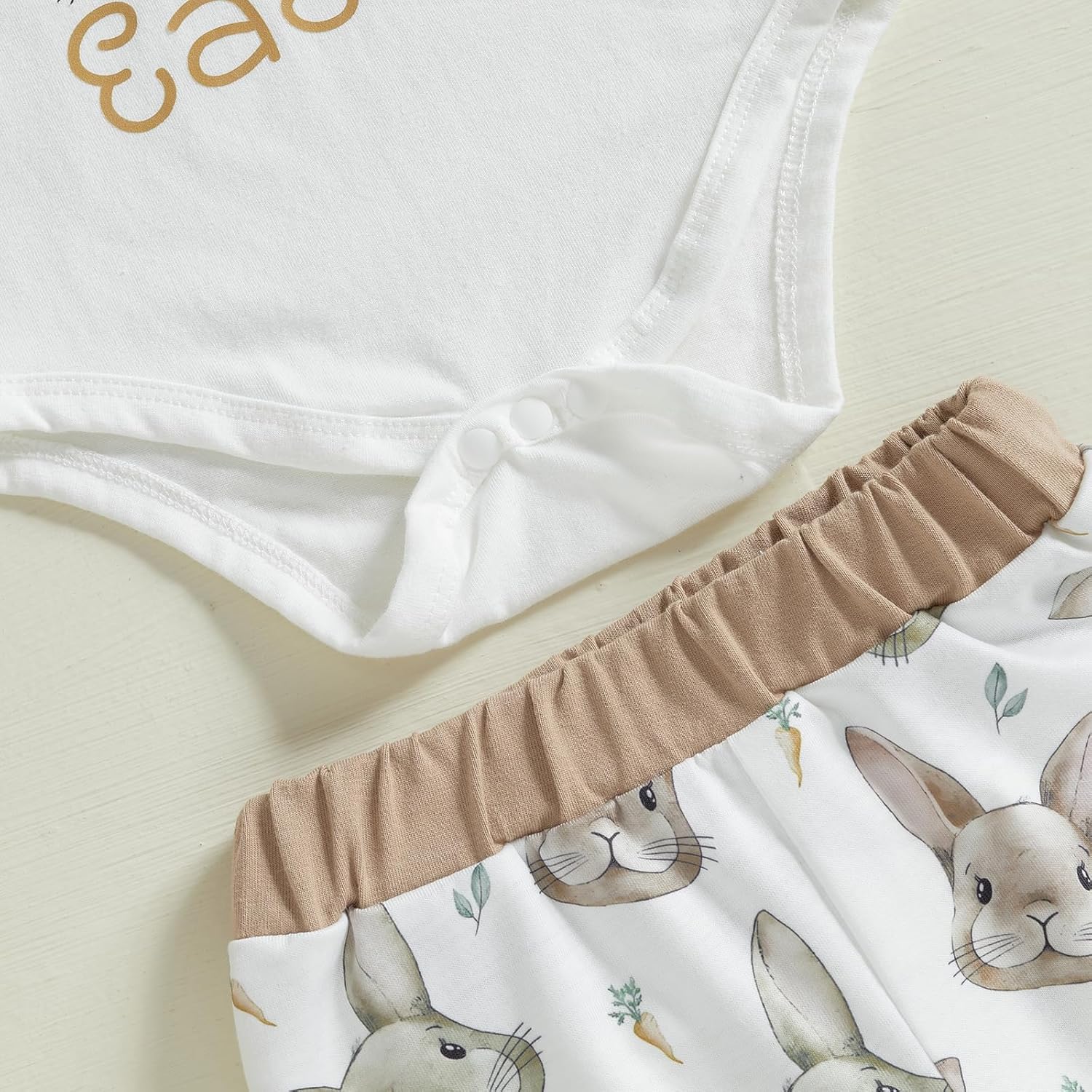 MAHUAOYIXI Toddler Baby Easter Outfits Newborn Baby Boys Clothes Bunny Print Long Sleeves Romper and Truck Carrot Print Pants and Hat Infant Boys 3Pcs Clothing Set