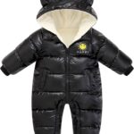 Soft and cozy material – the baby snowsuit is made of high quality cotton and polyester, and consists of three layers to trap heat and keep little ones warm and cozy. Multi-layer fabric fixing is not easy to move. The inner material is soft and skin-friendly, while the outer material is splash-proof, waterproof, windproof and easy to clean. The romper for toddlers will accompany your baby through the cold winter months.