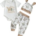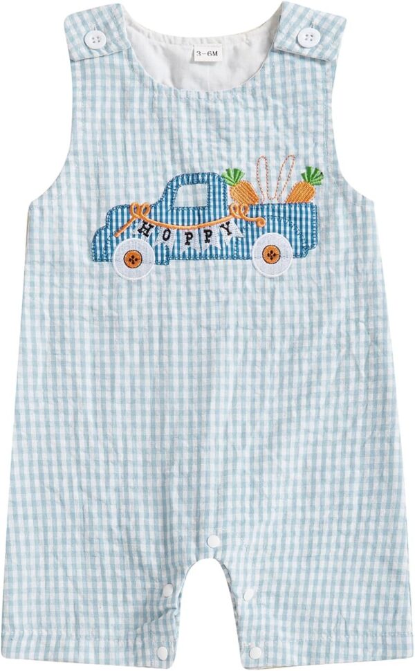 Geagodelia Toddler Baby Boy Easter Outfit Bunny Carrot Embroidered Sleeveless Romper My First Easter Baby Grow Baby Summer Clothes