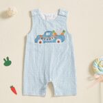 Toddler Baby Boy Easter Outfit Bunny Carrot Embroidered Sleeveless Romper My First Easter Baby Grow Baby Summer Clothes
