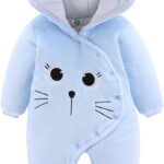 JiAmy Newborn Baby Winter Hooded Romper, Cartoon Zipper Footie Fleece Snowsuit Jumpsuit Outfits 0-12 Months
