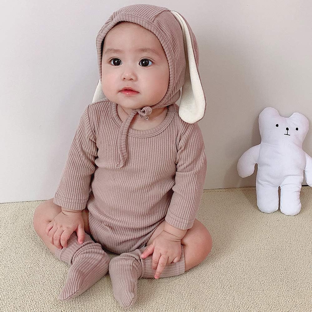Newborn Baby Rompers with Footies Hat Boys Girls Jumpsuit Winter Outfits Set, 0-3 Months