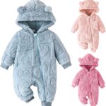 Newborn Baby Rompers with Footies Hat Boys Girls Jumpsuit Winter Outfits Set, 0-3 Months
