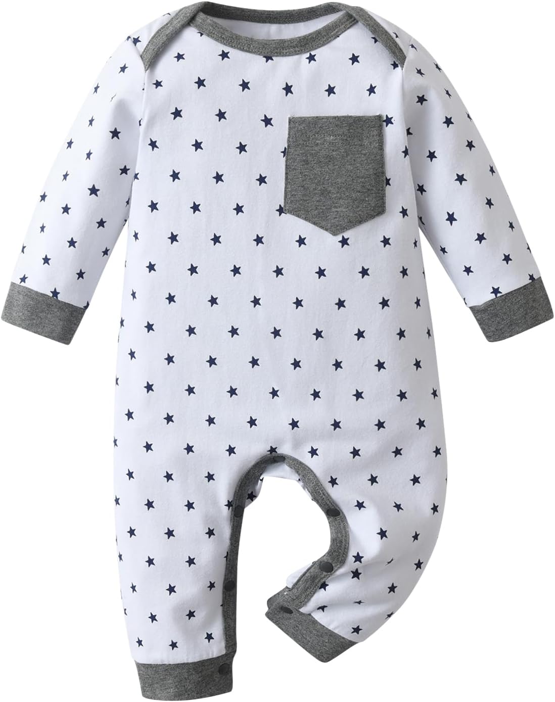 Tearfuty Newborn Baby Boy Rompers Cotton One Piece Jumpsuit Long Sleeve Rompers(2 Pack)