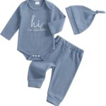 Newborn Baby Rompers with Footies Hat Boys Girls Jumpsuit Winter Outfits Set, 0-3 Months