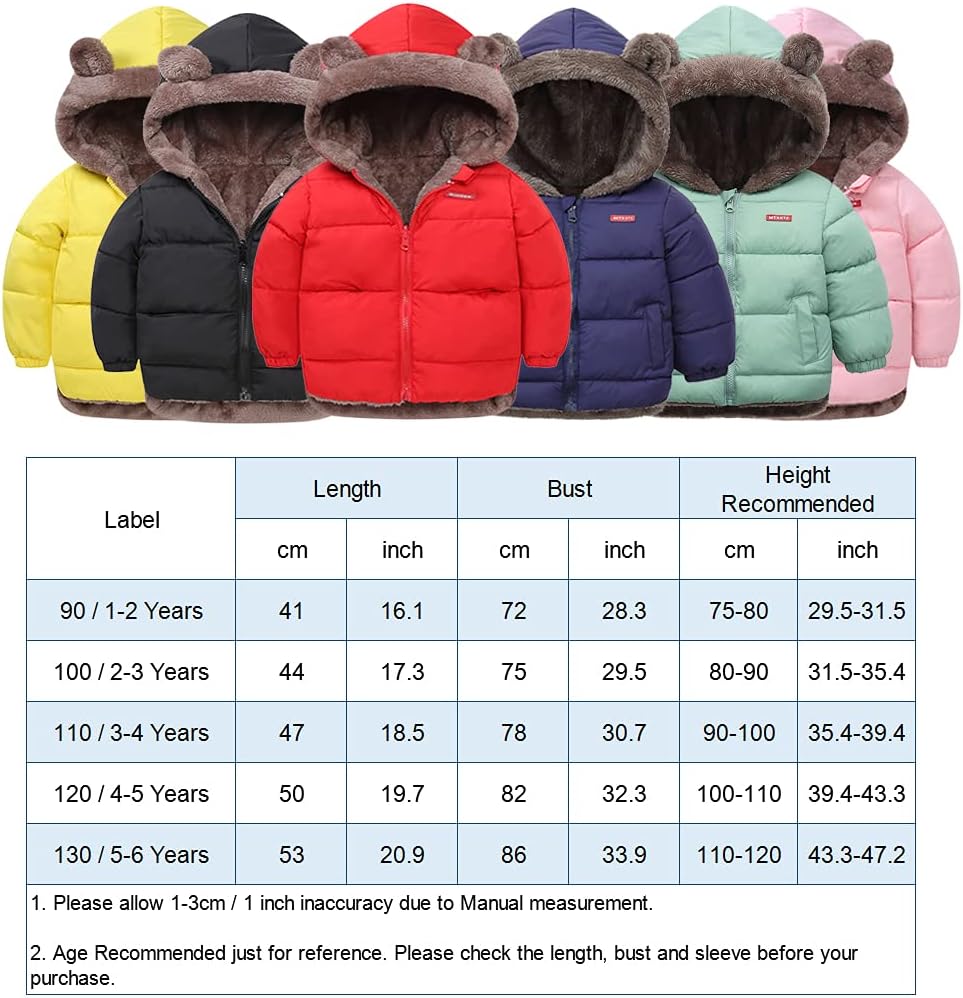 Kids4ever Baby Boys Girls Winter Coat Toddler Zipper Hooded Jacket Windproof Warm Fleece Outerwear Snowsuit with Two Pockets 12 Months-5 Years