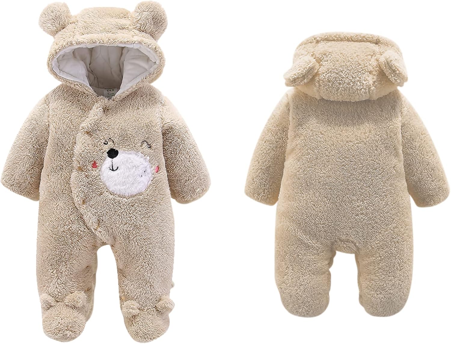 Borlai Baby Winter Snowsuit Romper Fleece Hooded Onesies Warm Jumpsuit Outcoat for Girls Boys