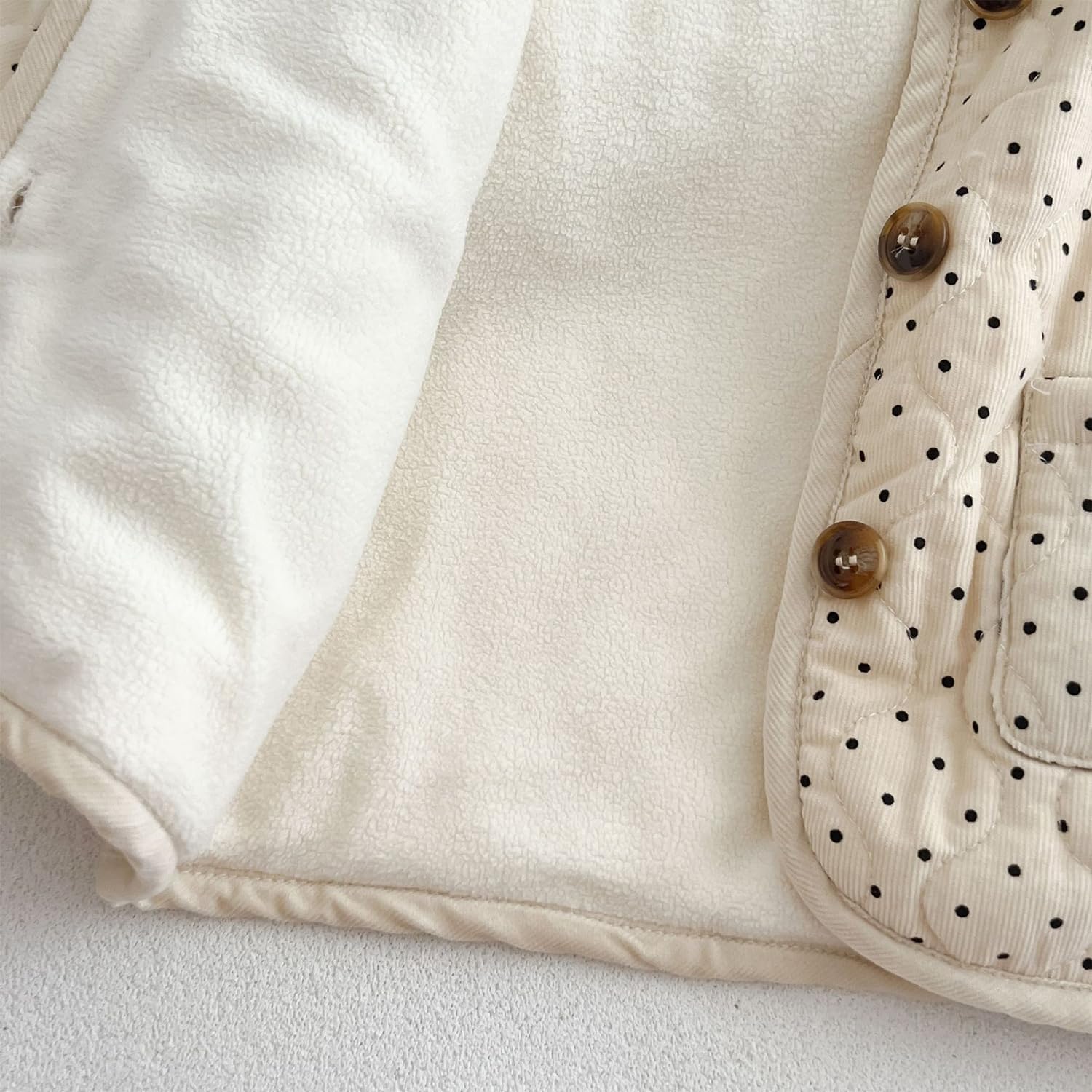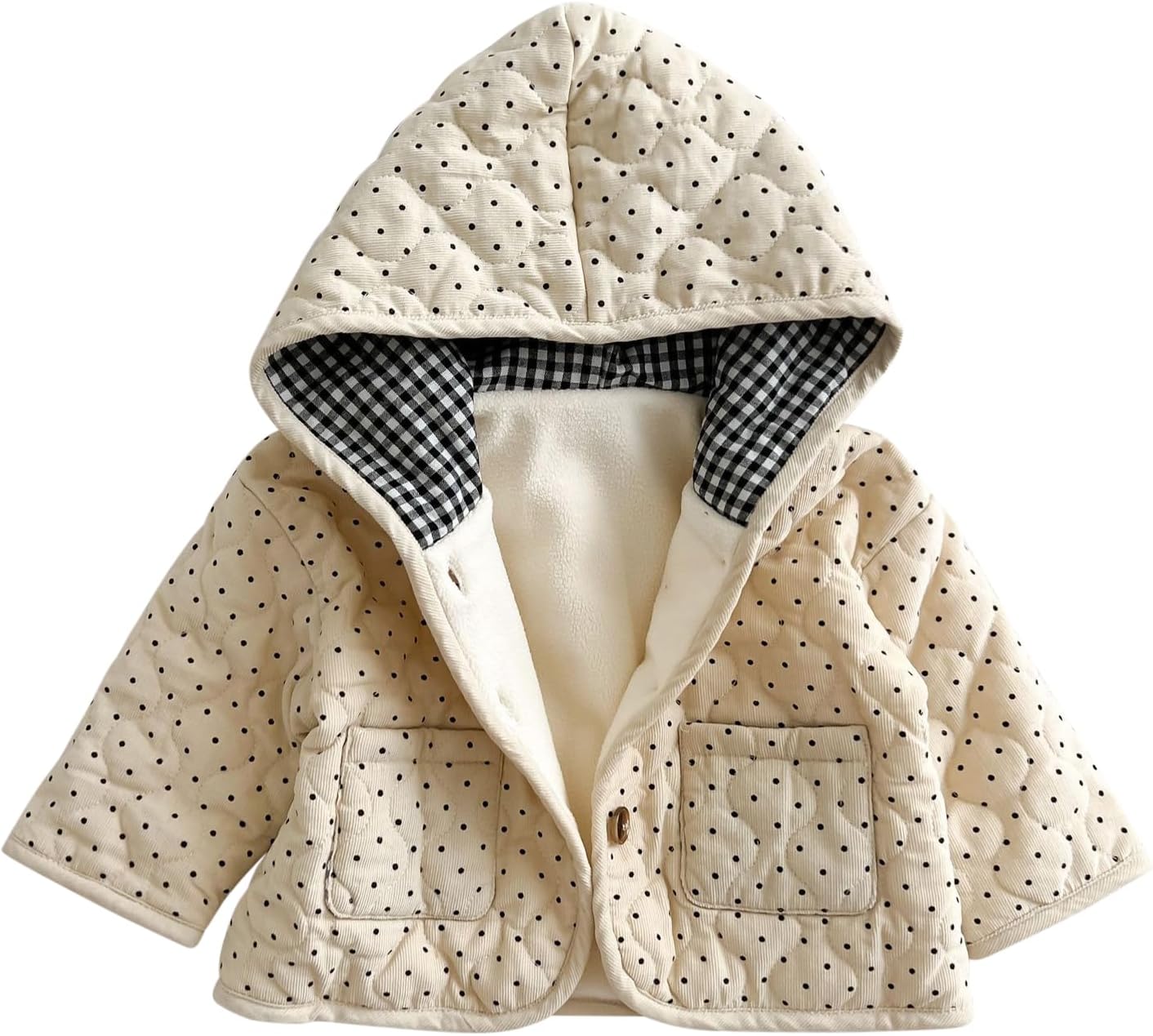 De feuilles Newborn Baby Boys Girls Quilted Hooded Coat Jacket Winter Warm Fleece Lining Button Down Outwear with Polka Dot Print