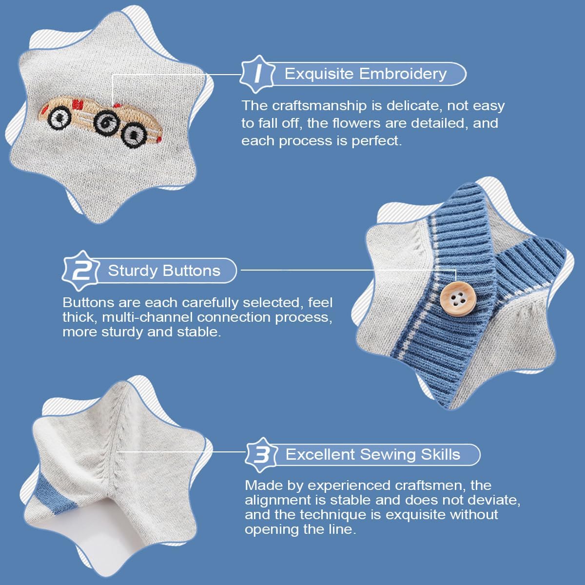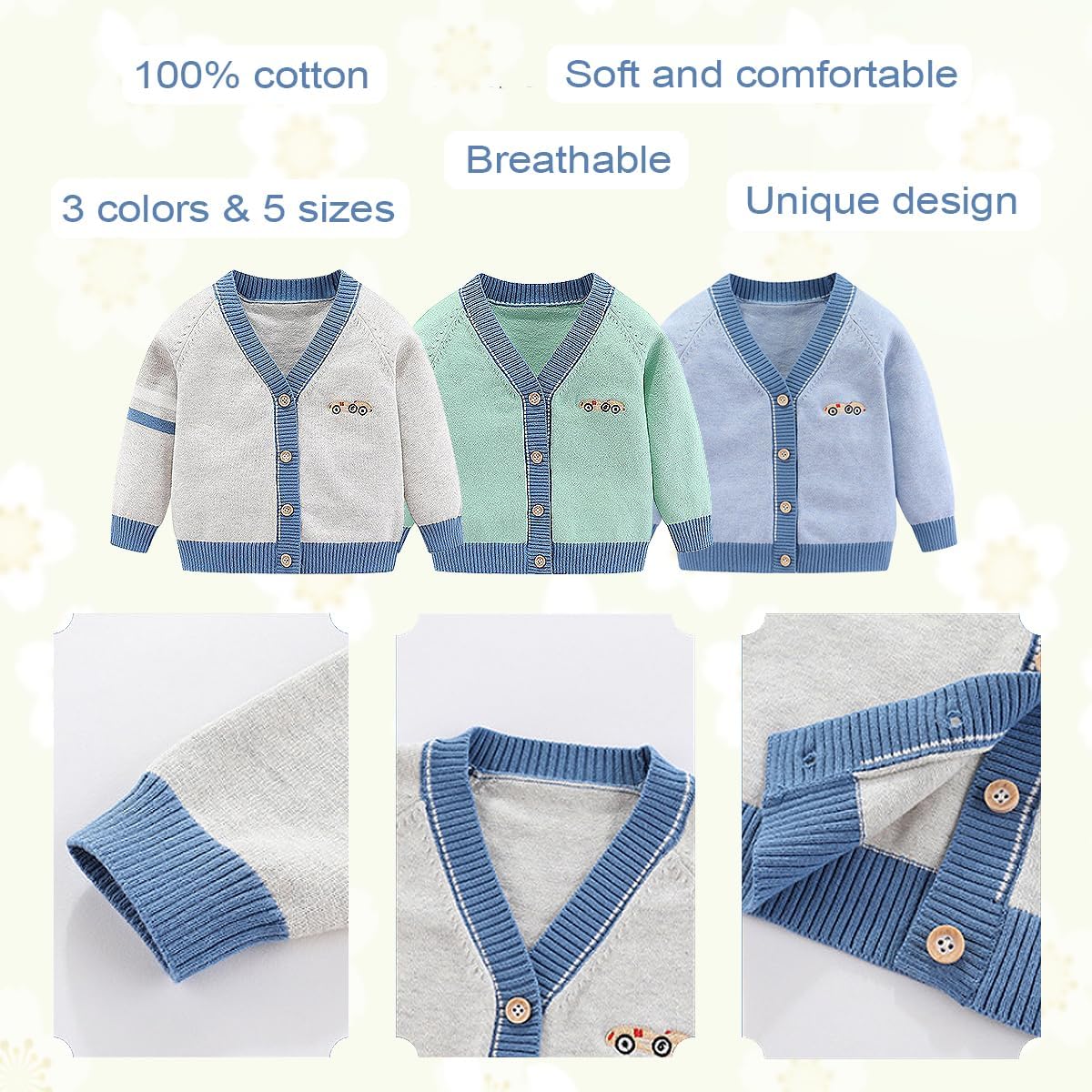 This little boy sweater is made from 100% cotton for a soft, cozy fit and a medium thickness that won’t get stuffy.