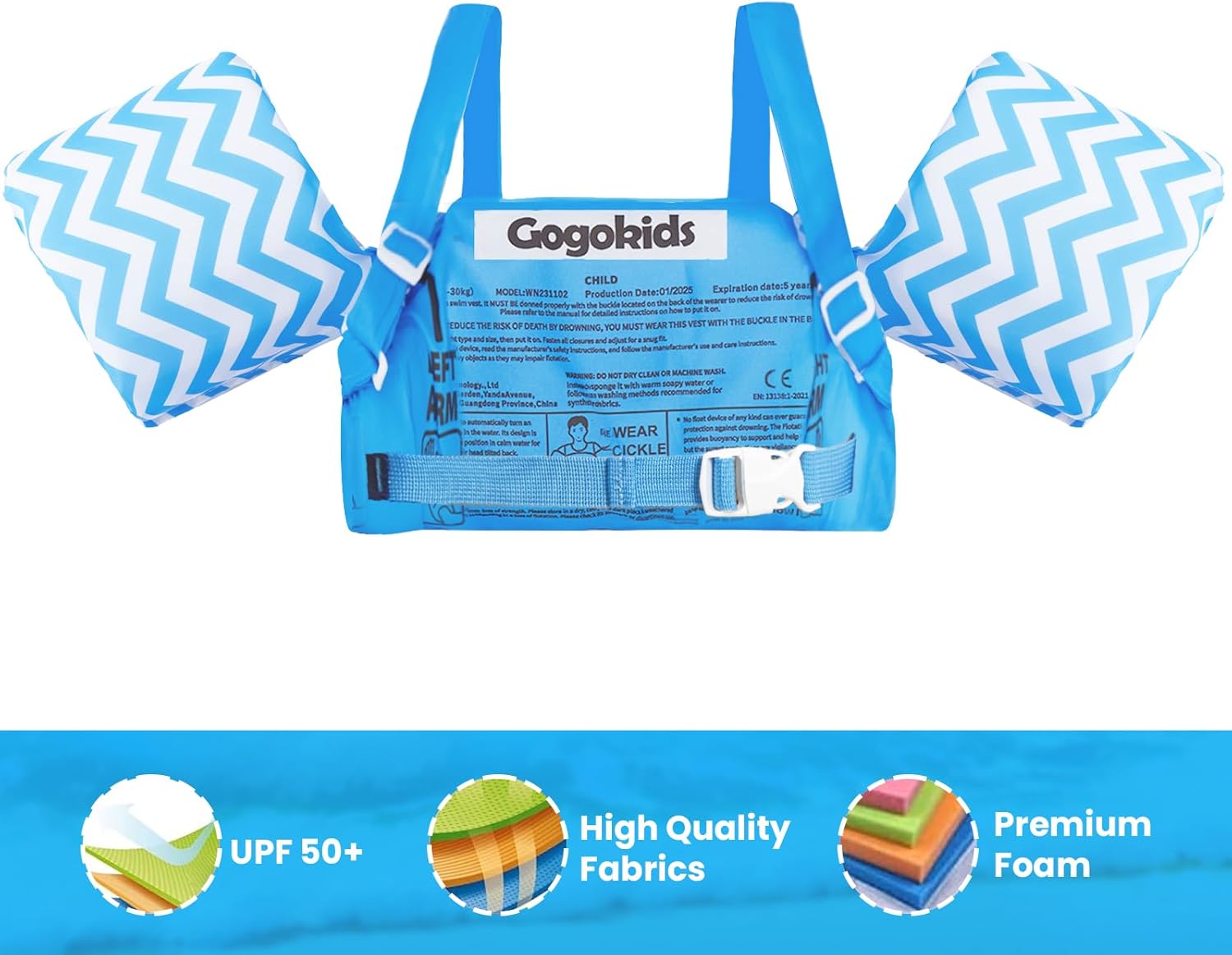 Gogokids toddler swimming jacket, swim float jacket with armbands, make your child safer and more fun when learning to swim.
