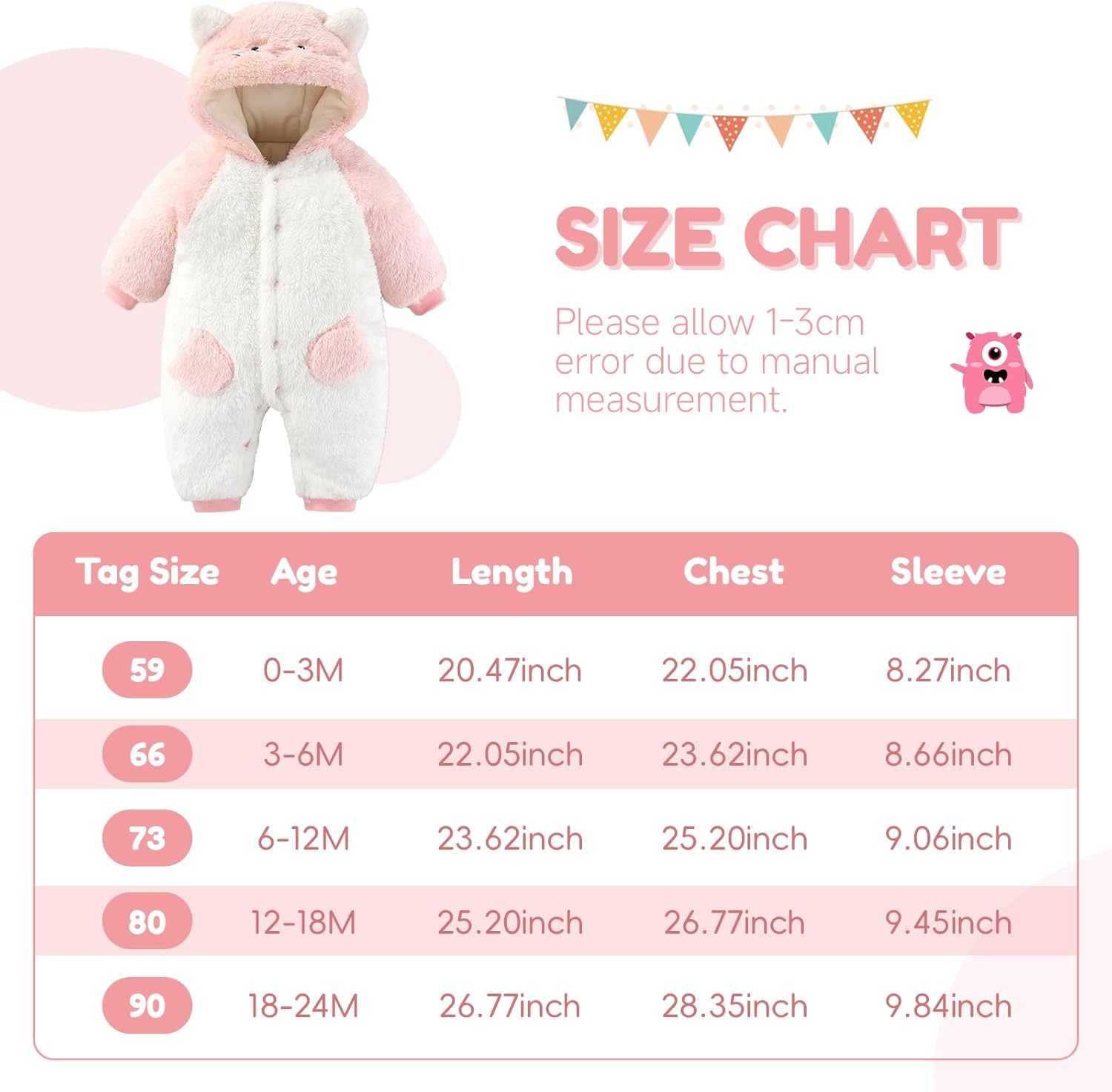 JiAmy Baby Snowsuit Hooded Romper, the perfect winter outfit for your little ones. Keep your baby cozy and cute in this adorable winter fleece jumpsuit designed for boys and girls aged 0-24 months.