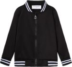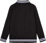 This kids’ jacket, with its classic stand-up collar and stripe detailing, offers a stylish sporty look along with the convenience of a full-zip front for easy wear and removal.