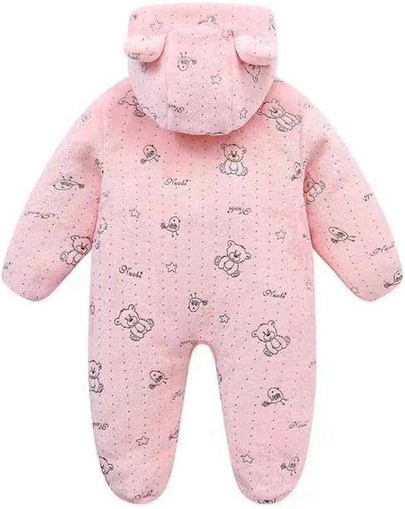 Newborn Baby Boys Girls Fall Winter Snowsuit Cartoon Bear Print Zipper Hooded Jumpsuit Infant Cute Warm Romper Outwear 0-12M