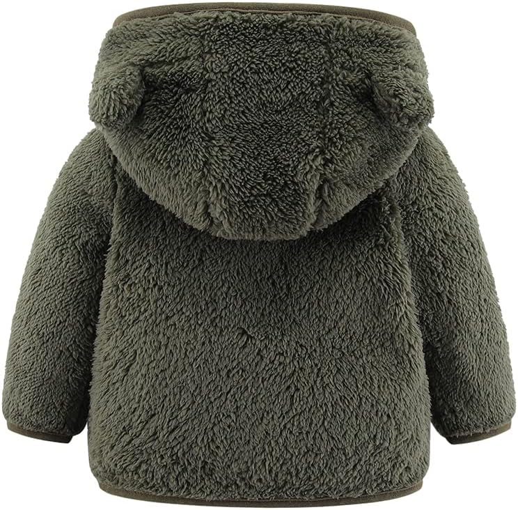 Siyova Baby Girl Boy Winter Fuzzy Coat 3D Bear Hooded Jacket Long Sleeve Zip-up Fleece Outerwear Newborn Winter Warm Clothes Cute