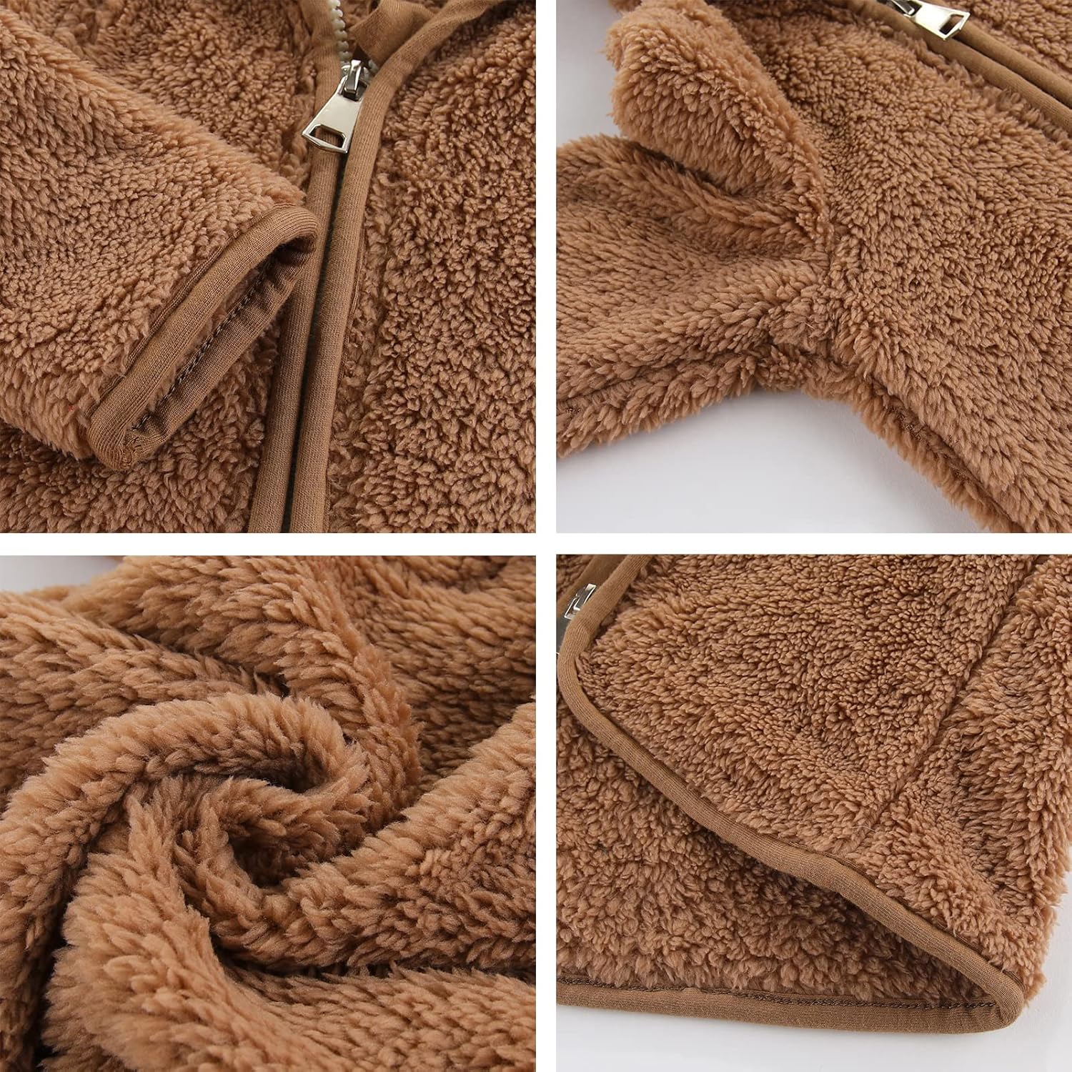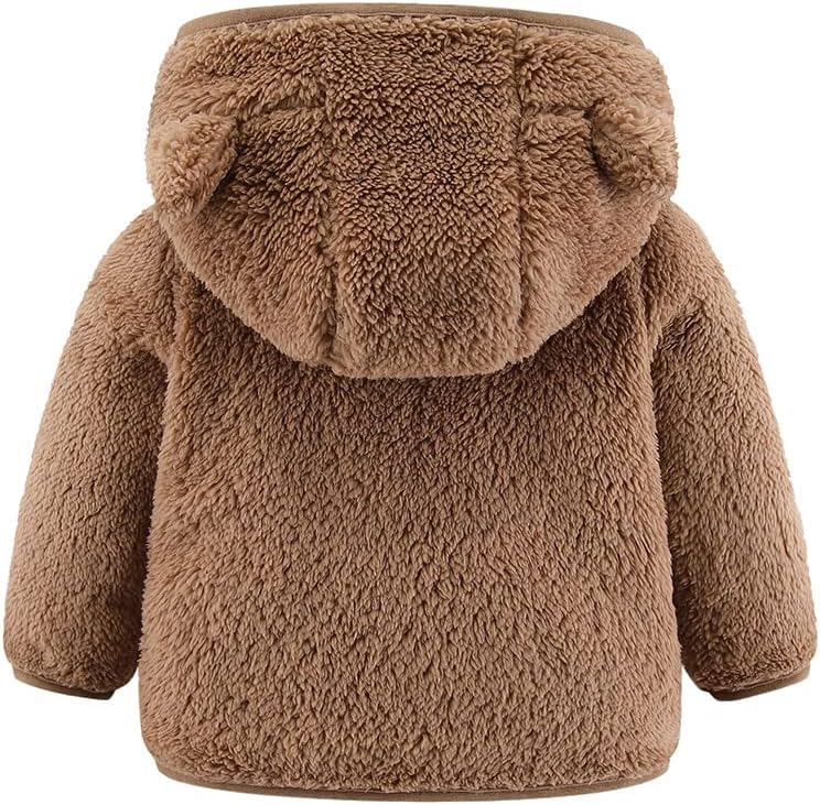 Siyova Baby Girl Boy Winter Fuzzy Coat 3D Bear Hooded Jacket Long Sleeve Zip-up Fleece Outerwear Newborn Winter Warm Clothes Cute