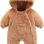 WYTbaby Baby Snowsuit Winter Overall Warm Fleece Romper Bear Hoodie For Boys Girls 0-12 Months