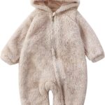WYTbaby Baby Snowsuit Winter Overall Warm Fleece Romper Bear Hoodie For Boys Girls 0-12 Months