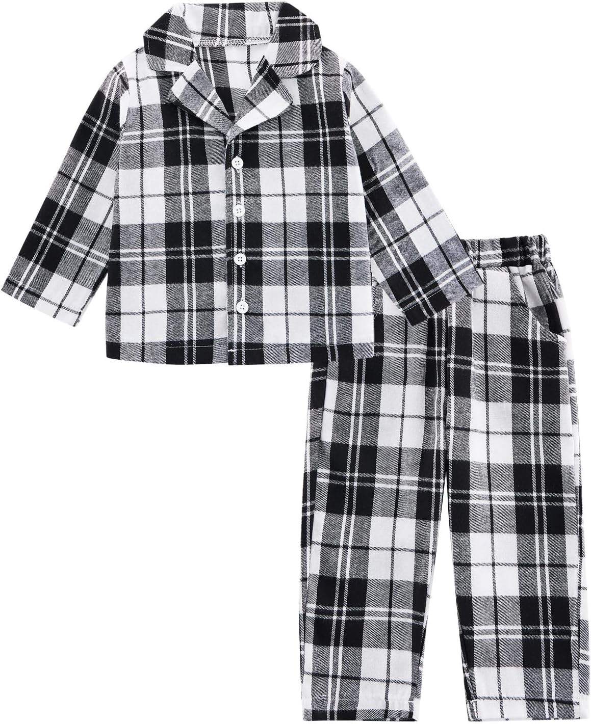 Naiyafly Kids Pajamas Set Plaid Button Down Pyjamas for Girls Boys Toddler Christmas Sleepwear Baby PJS 2 Piece Shirts Tops Pants Nightwear Homewear 18 Months – 6 Years