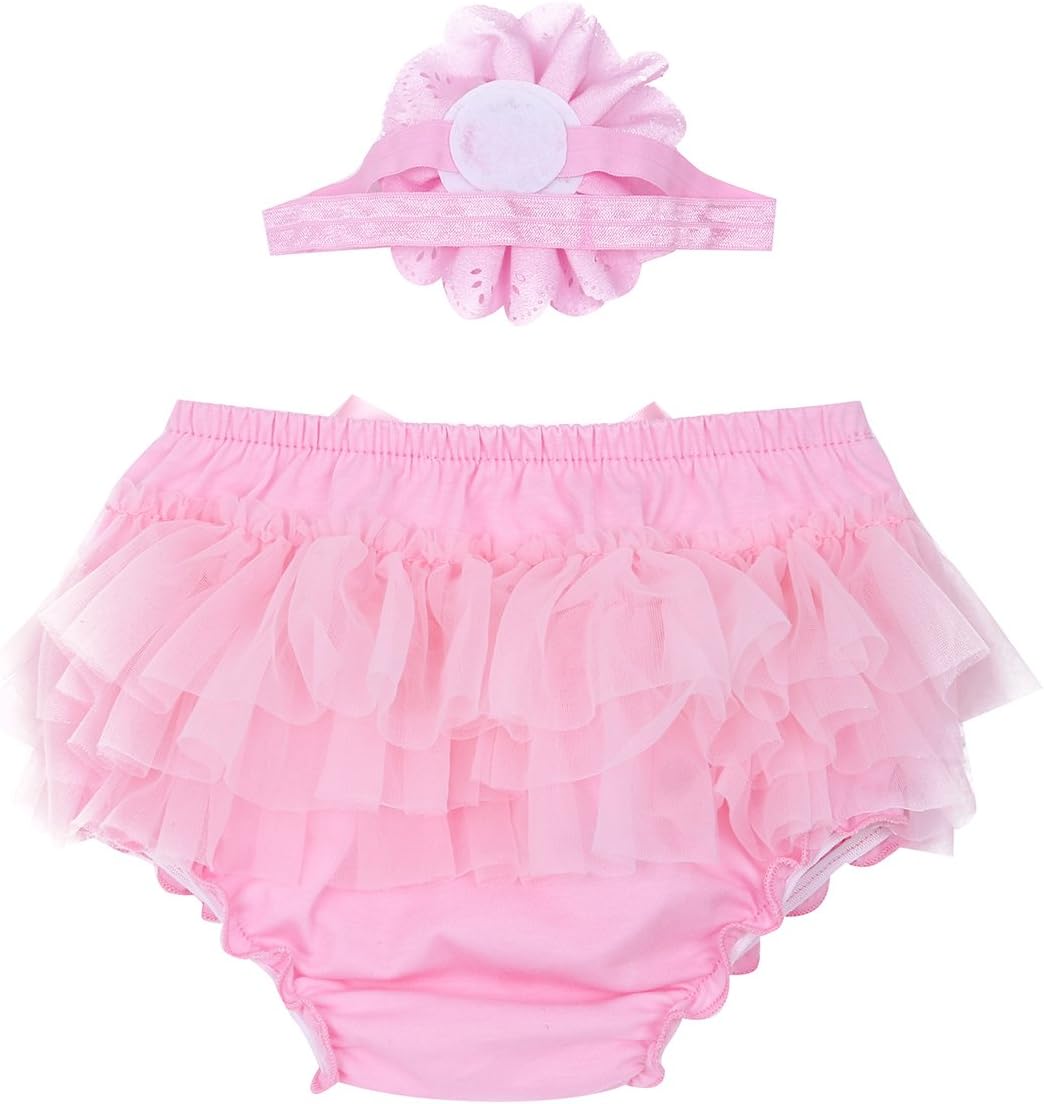 Agoky Baby Girls Ruffle Tutu Bloomers Diaper Cover Panties with Flower Headband Outfit Set Photo Shoot Prop