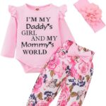 ChYoung Baby Girl Clothes Set Newborn Outfit Little Sister Romper Top and Rose Printed Pant and Headband 3 Pieces