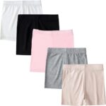 AOOPOO 5 Pack Baby Girls Comfort Modal Shorts, Toddler Kids Solid Underpants Under Dress Pants Children Girls Shorts Set for Girls Kids 1-12 Years