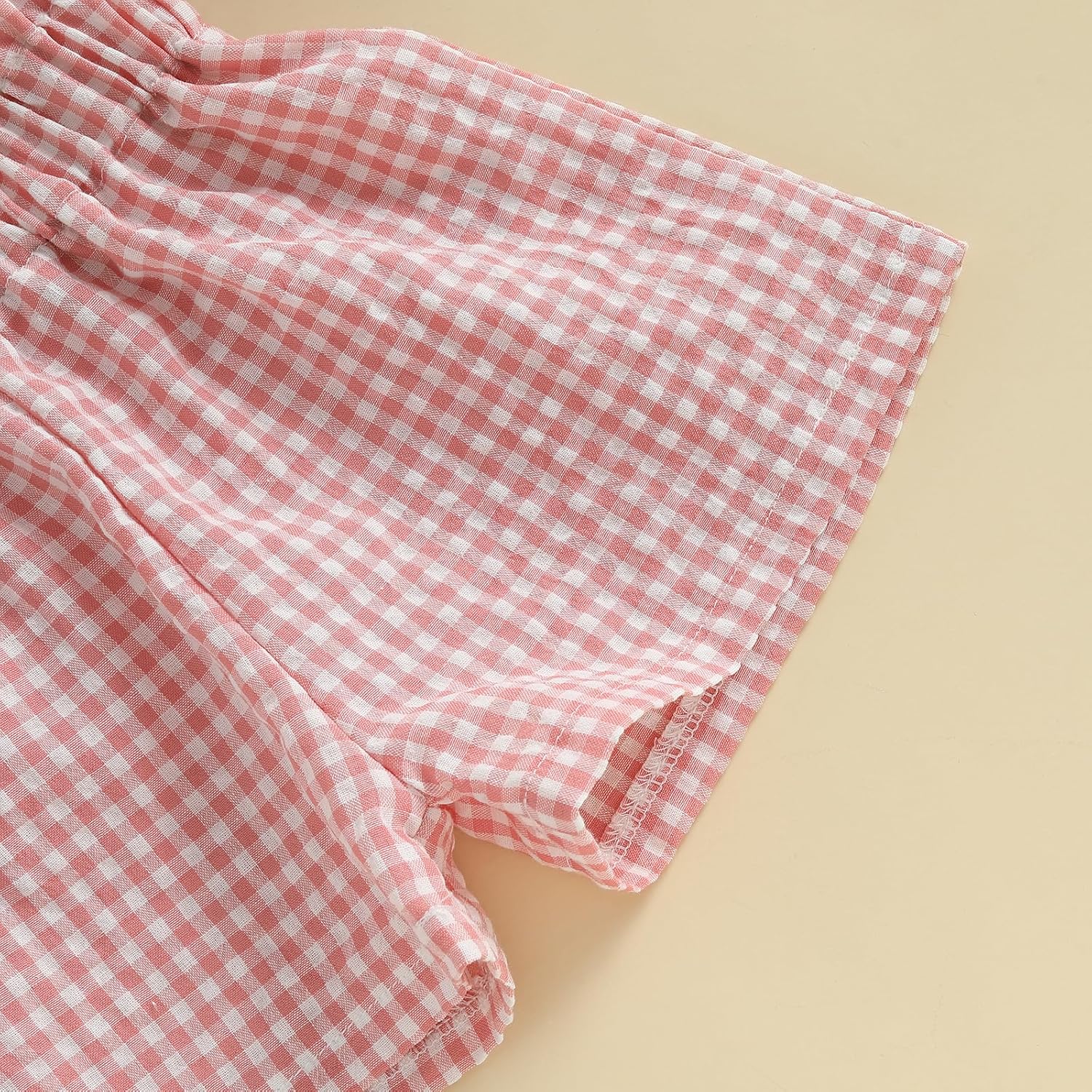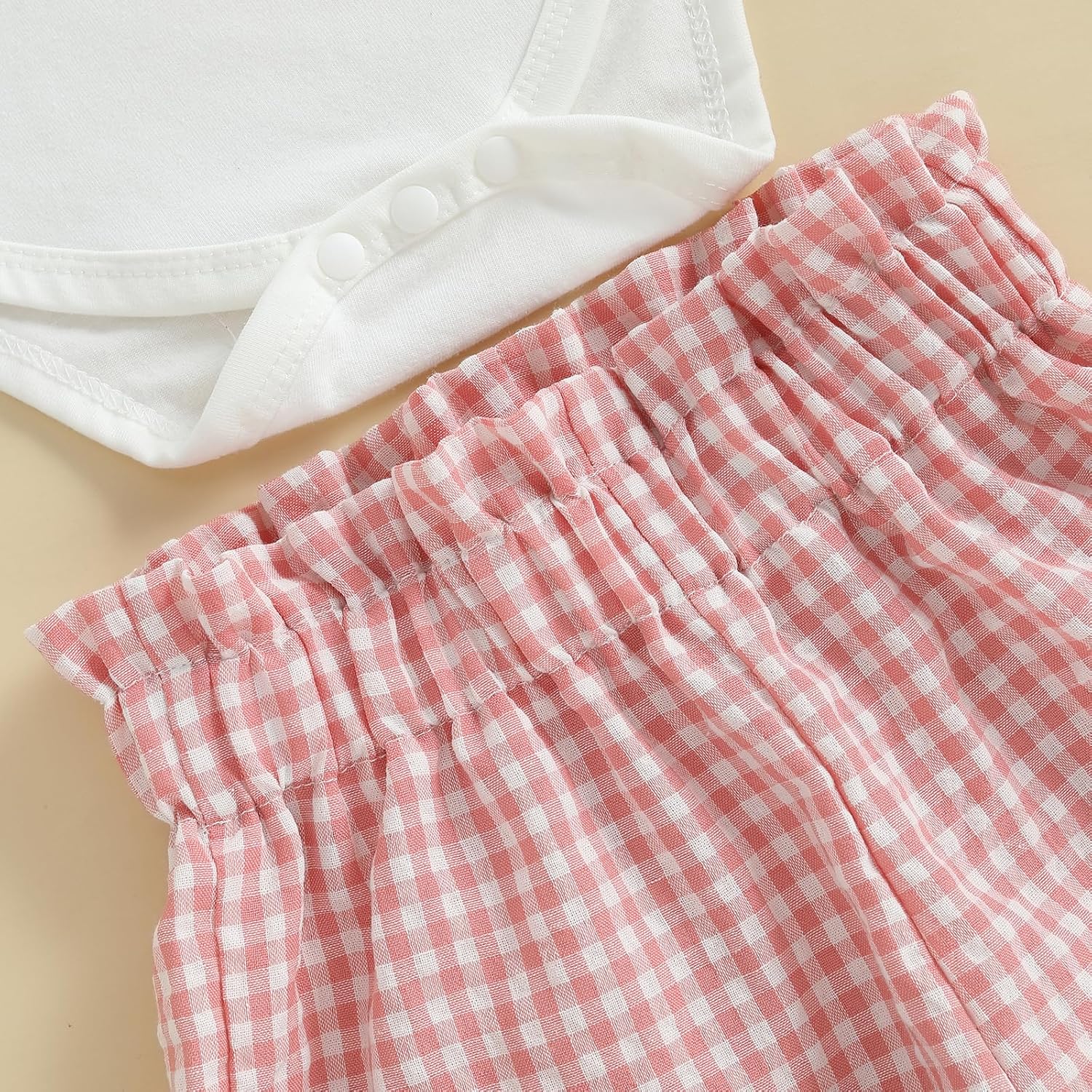 Baby Girl 1st Birthday Outfits Short Sleeve Romper Plaid Shorts Set Headband One Year Old Girl Birthday Outfits