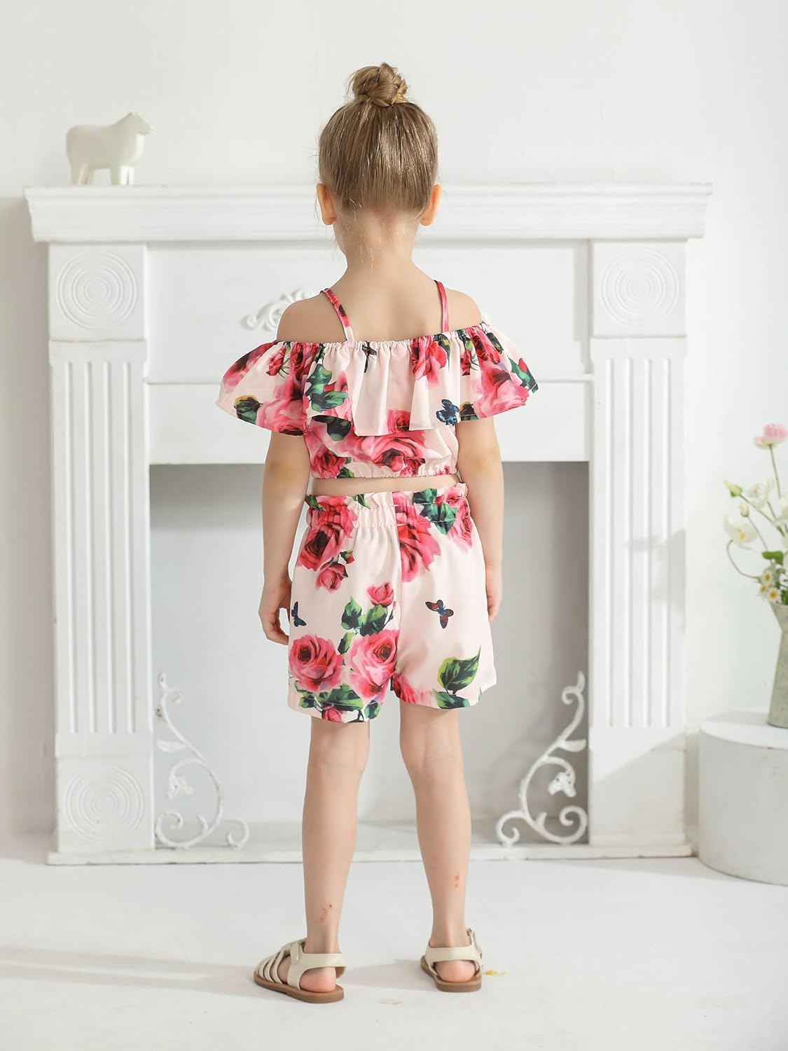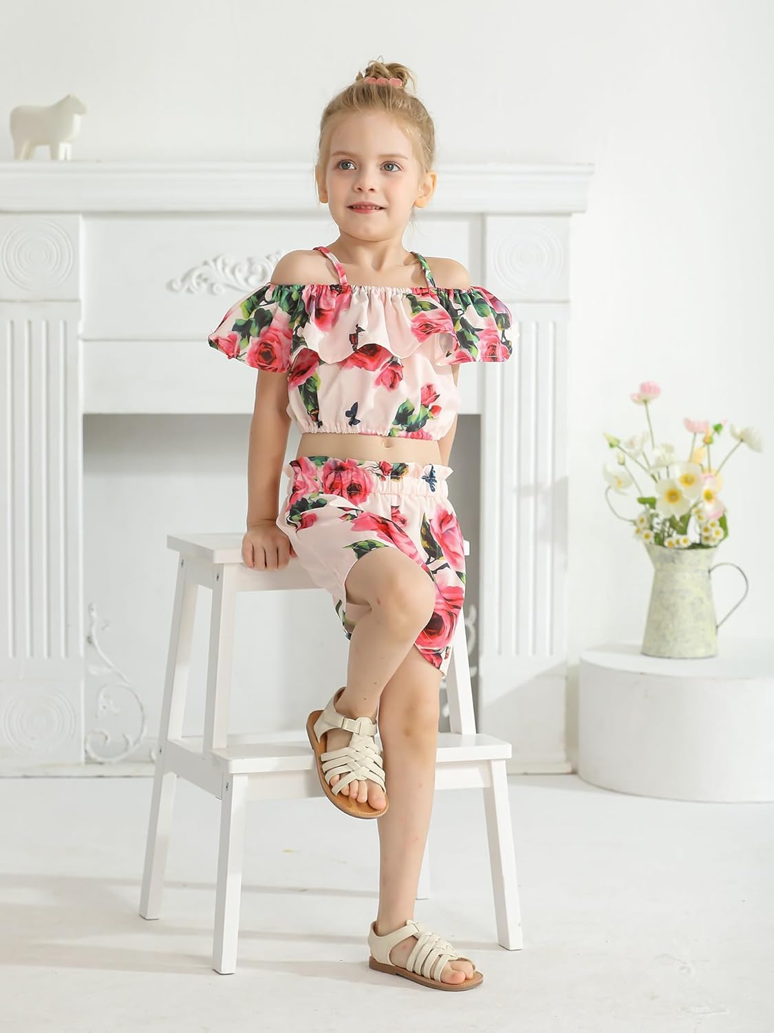 Baby Girl Clothes Floral Print Off Shoulder Tops + Floral Shorts Outfit Set