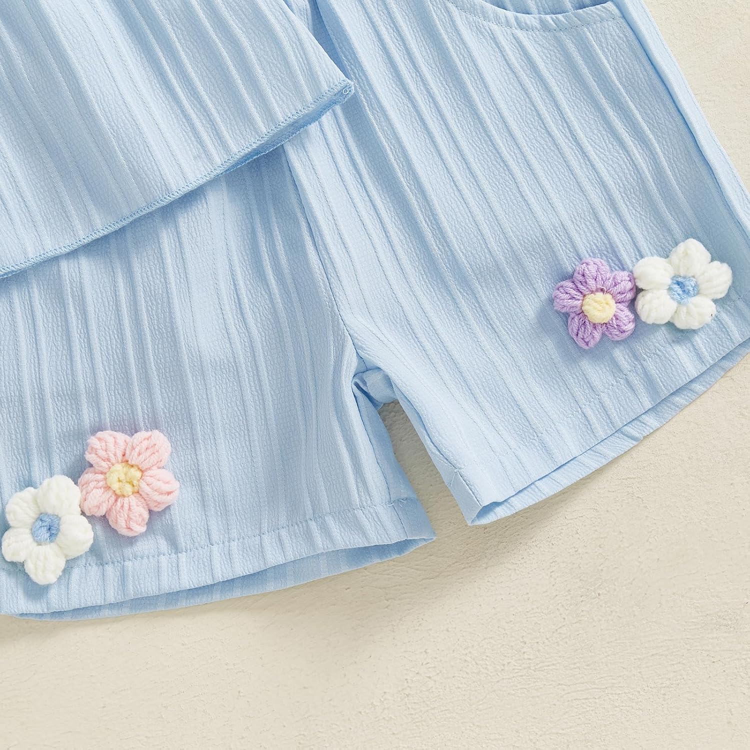 Baby Girl Summer Clothes 3D Flower Embroidery Ruffle Pleated T Shirt Smocked Tunic Top Casual Shorts Set 2Pcs Toddler Summer Outfit 9M-4Y