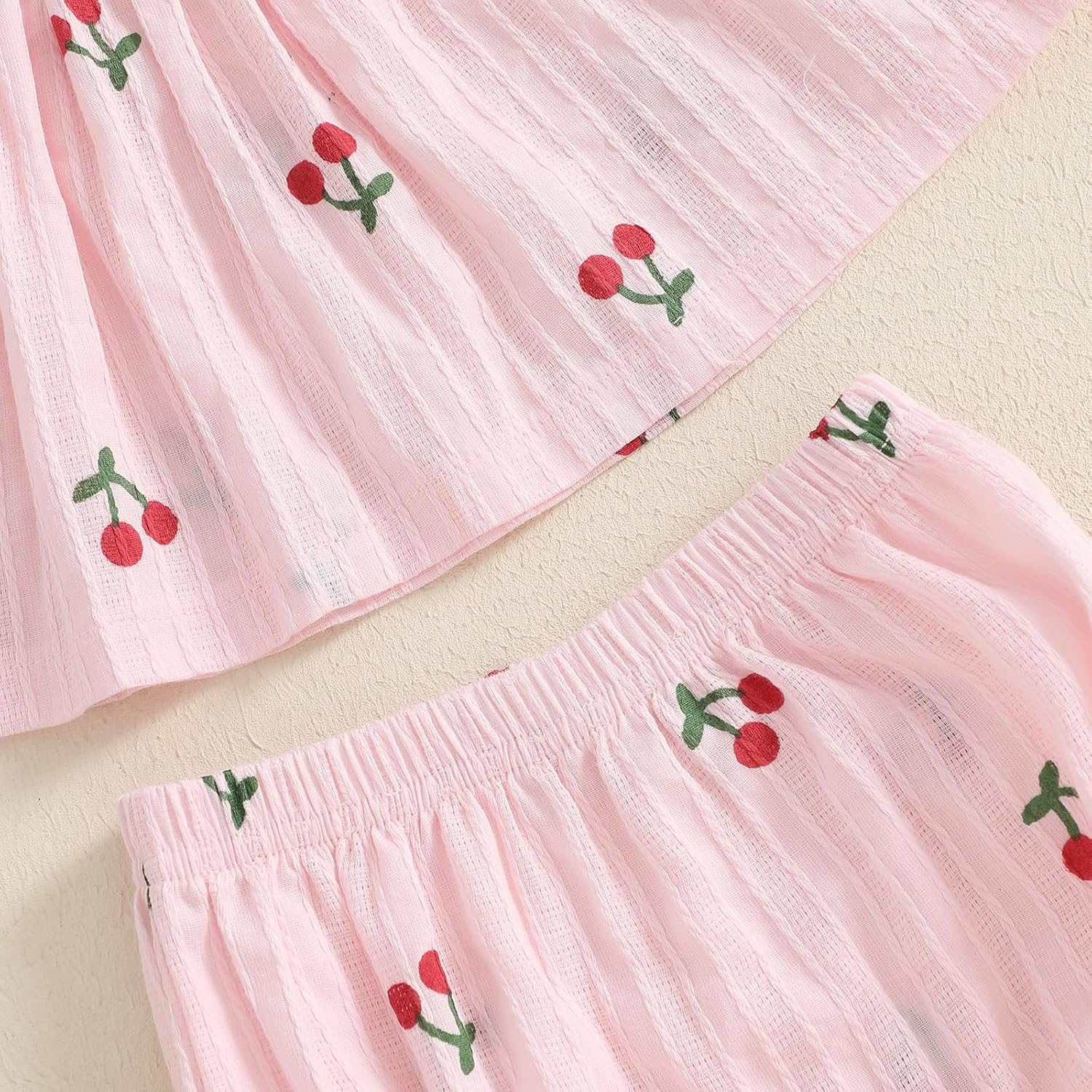 Baby Girl Summer Outfits Bow Print Flying Sleeve Smock Tunic Shirt Top Elastic Waist Ruffled Bloomers 2 Pcs Set Cute Clothes for Little Girls
