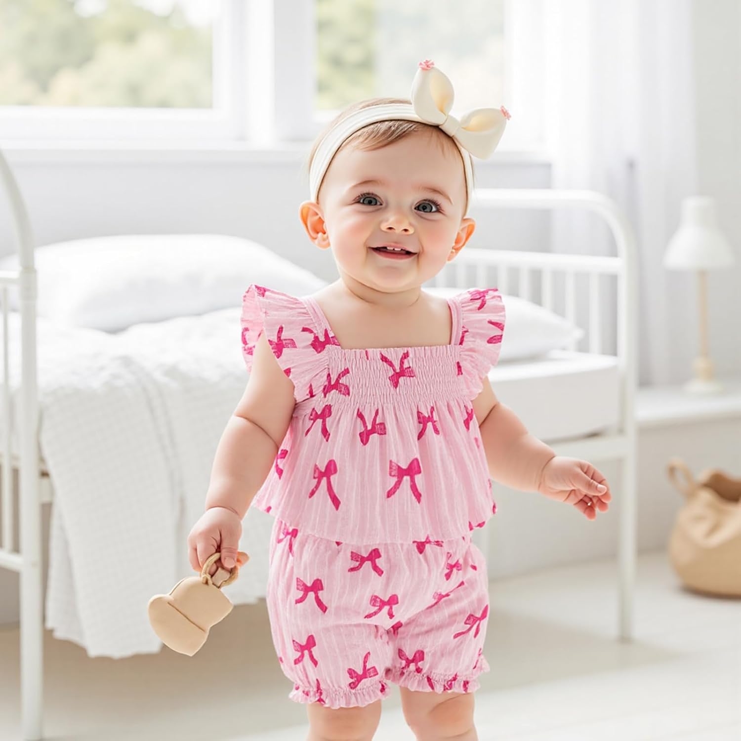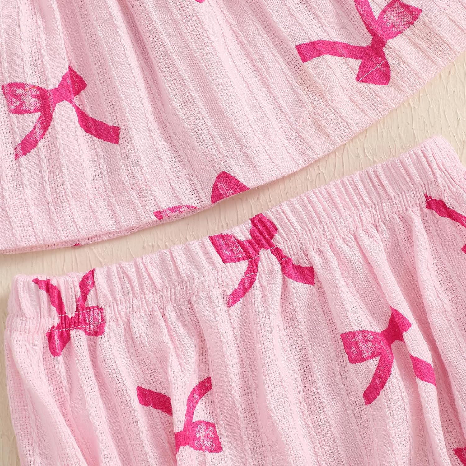 Baby Girl Summer Outfits Bow Print Flying Sleeve Tops with Elastic Waist Ruffled Shorts 2 Pcs Set