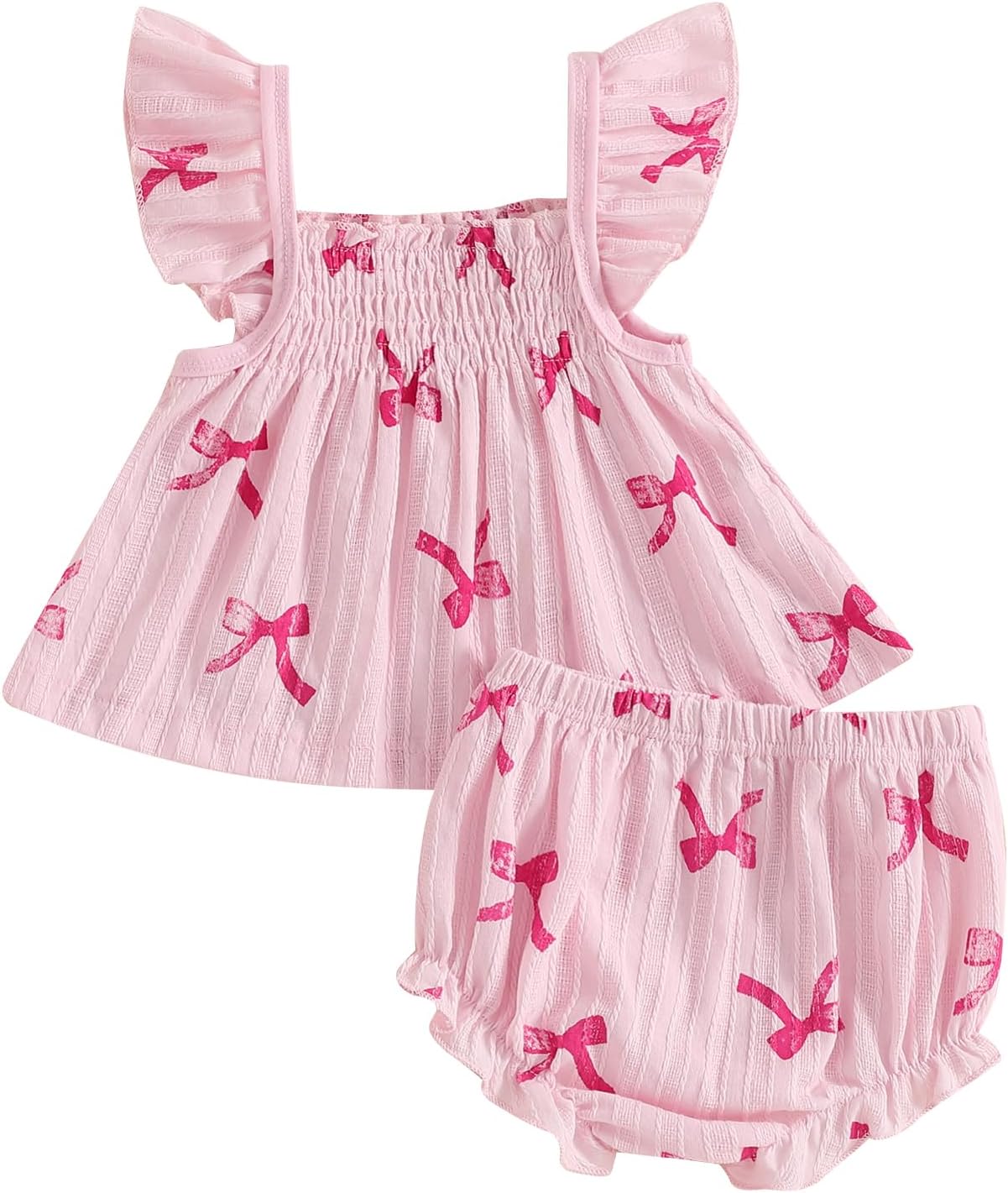 Baby Girl Summer Outfits Bow Print Flying Sleeve Smock Tunic Shirt Top Elastic Waist Ruffled Bloomers 2 Pcs Set Cute Clothes for Little Girls