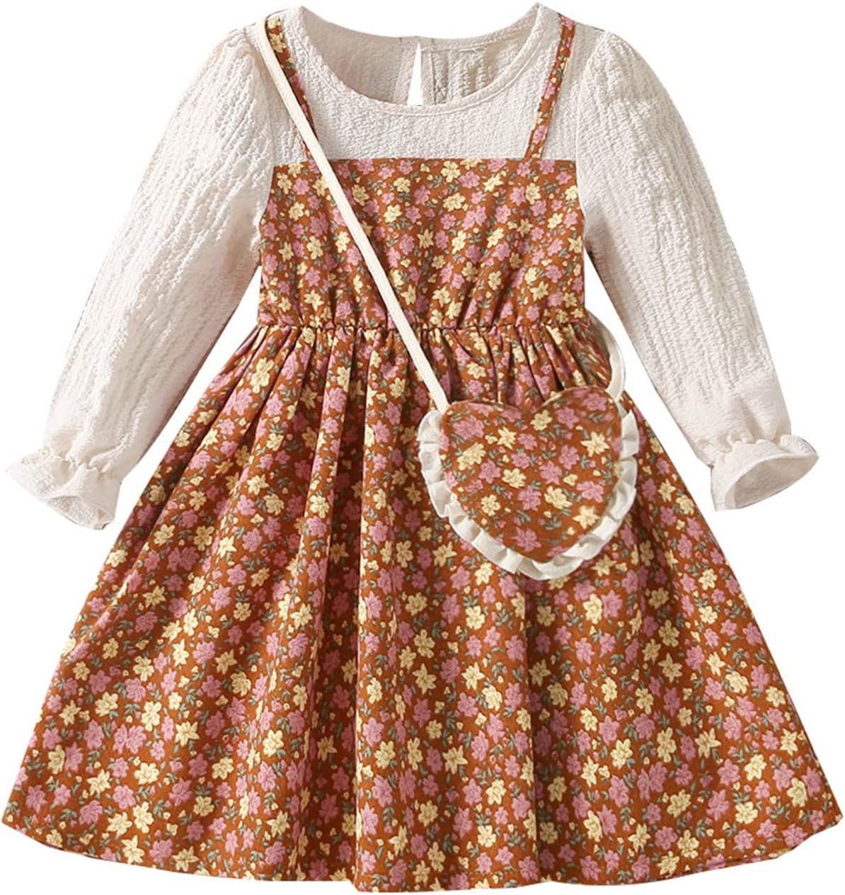 Bloomers Baby Toddler Kids Children Baby Girls Long Ruffled Sleeve Patchwork Floral Princess Dress with Pockets Bags Clothes Set 2PCS Outfits Baby Girl Baby Clothes