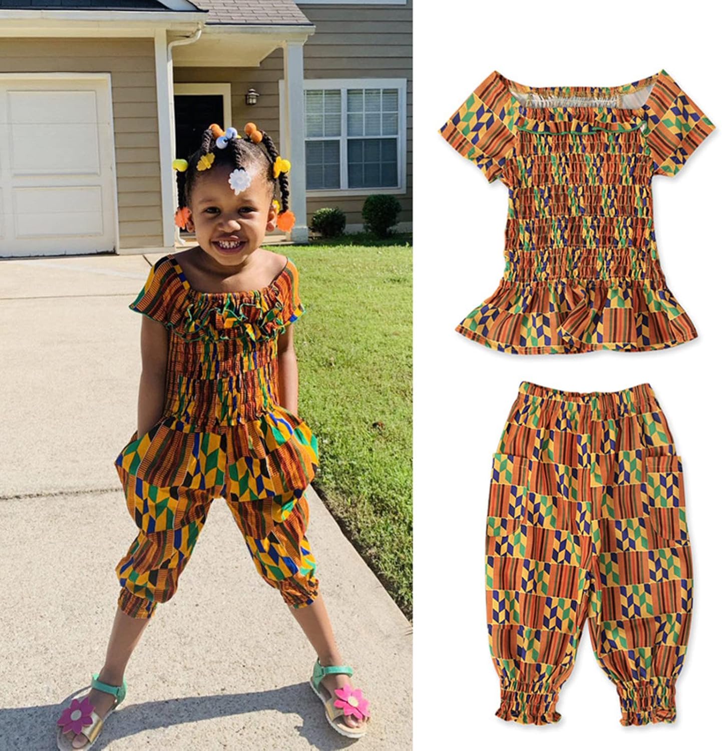 Dashiki Bloomers Set Pants Tops Baby 16Y Tee Girls Kids Toddler Girls Outfits&Set Baby Ups Outfit