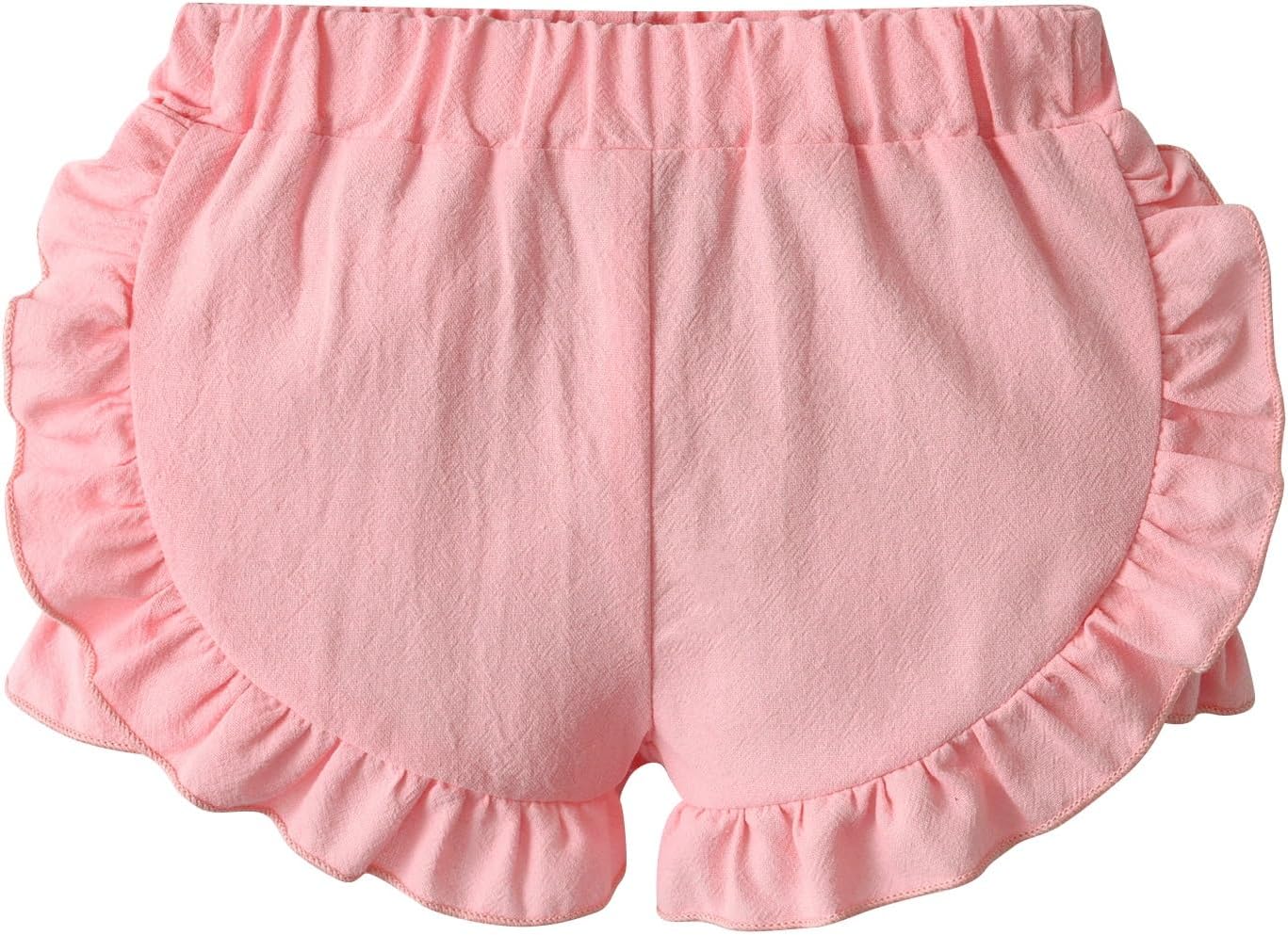 Derouetkia Infant Baby Girl Shorts Colourful Summer with Ruffle Design 3 Pcs