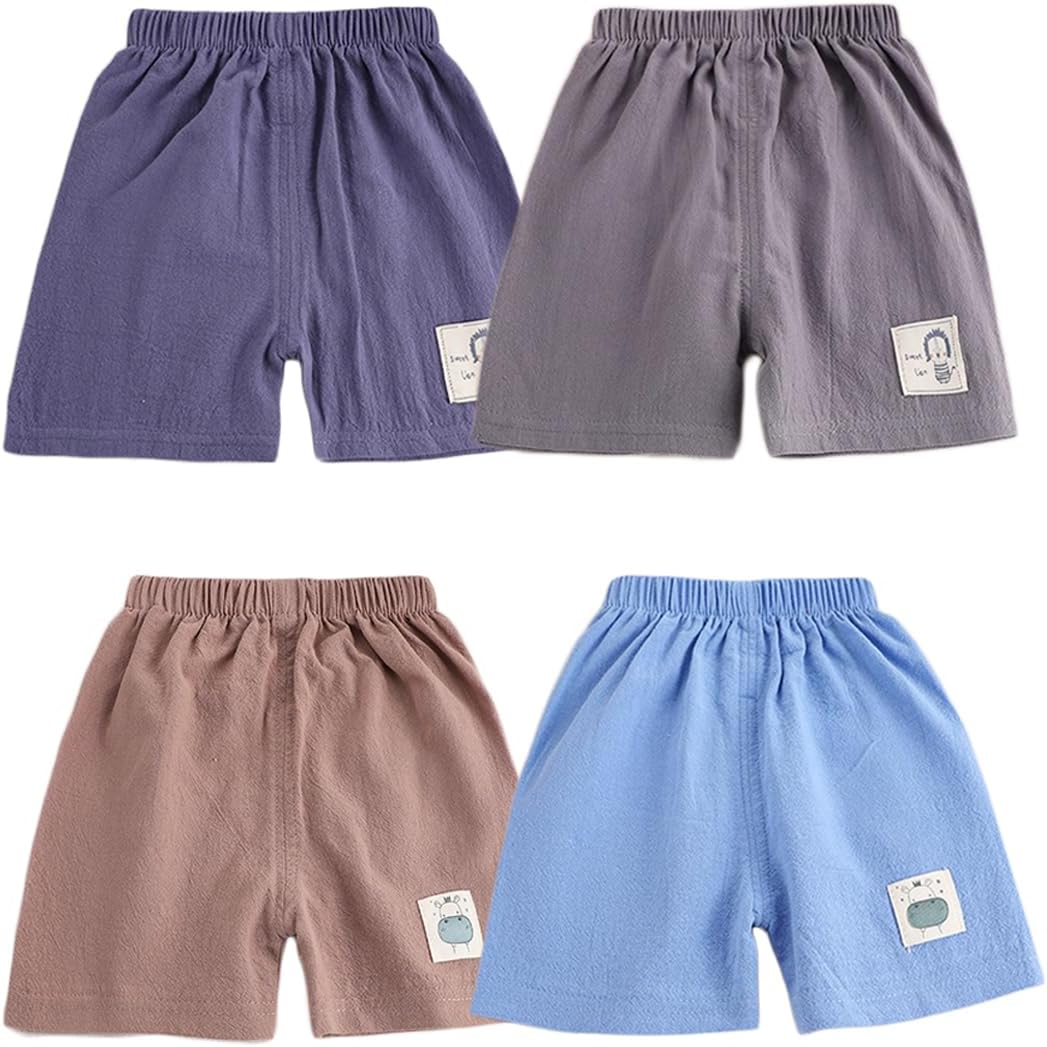 DUDUFUN 4-Pack Little Baby Girls Boys Cotton Cartoon Printed Shorts Outfits