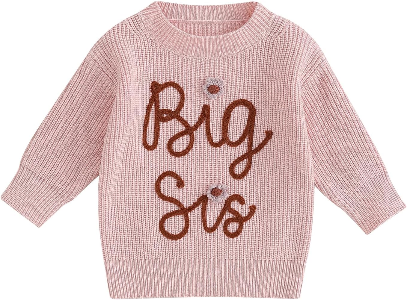 FeMereina Baby Girl Winter Clothes Letter Embroidery Knit Sweater Sister Matching Outfits