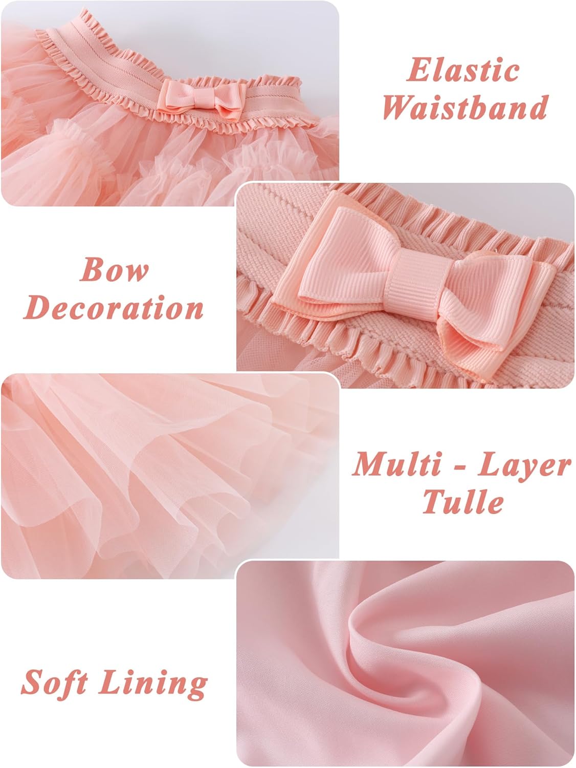 Happy Cherry Girl’s Tutu Skirts Toddler Ruffle Layered Tulle Skirt Princess Tutu Pettiskirt Party Dance Bubble Mini Skirt 12 Months – 7 Years