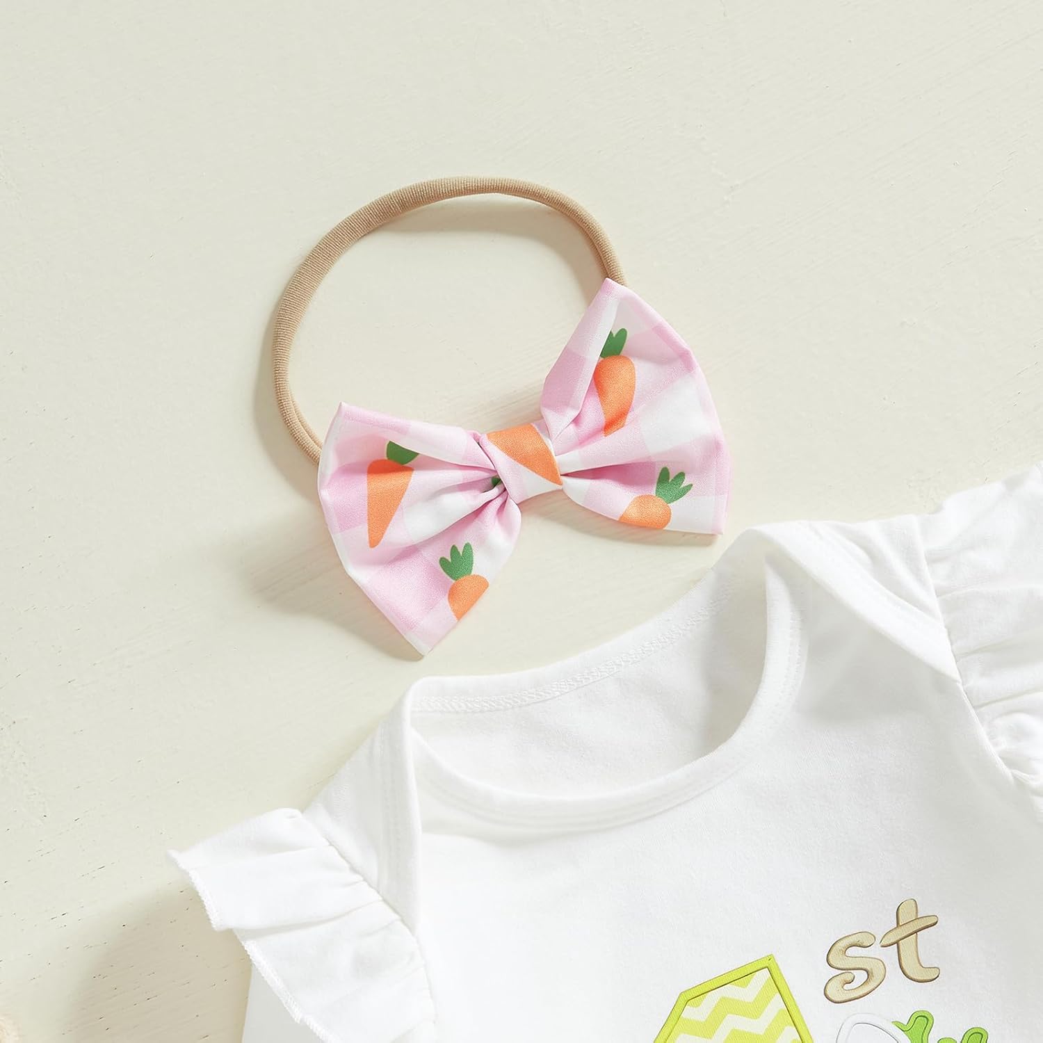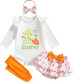 HodJIU My First Easter Baby Girl Clothes 4pcs Outfit Long Sleeve Bunny Romper Ruffle Bloomer Short Socks Bow Headbands Set Newborn Baby Clothing