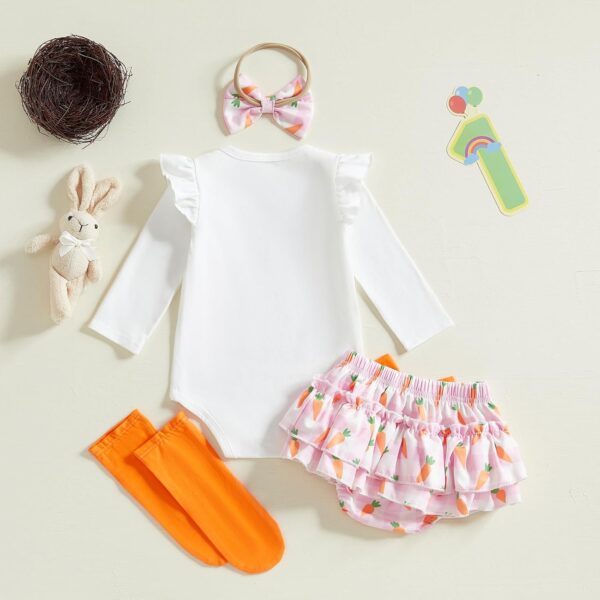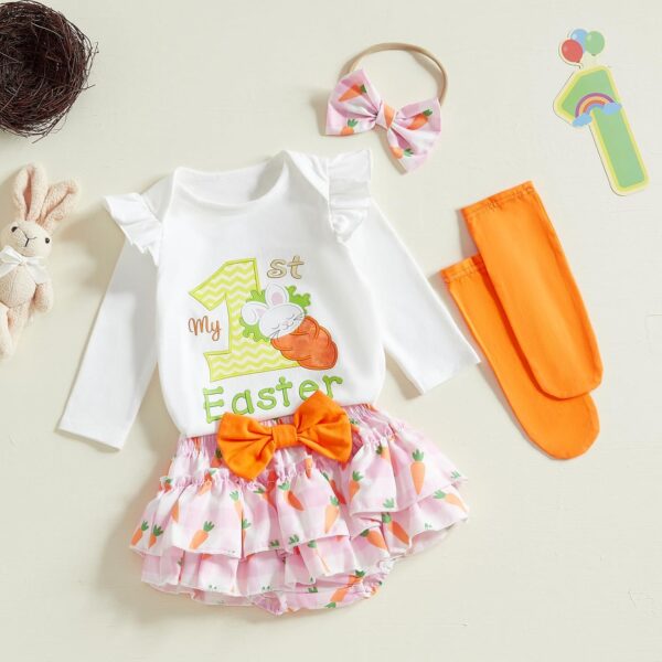 Baby Girl Easter Outfit Bunny Long Sleeve Romper Layered Ruffle Shorts Bow Headband Socks Spring Clothes