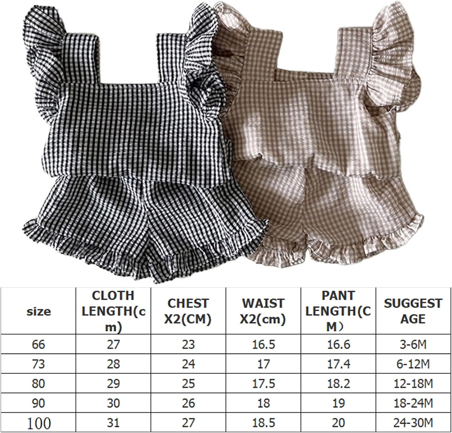 Size:80 Shirt Length: 11.41’’ Chest 9.84’’(25cm) Waist: 6.88’’(17.5cm) Shorts Length: 7.16’’ (18.2cm)